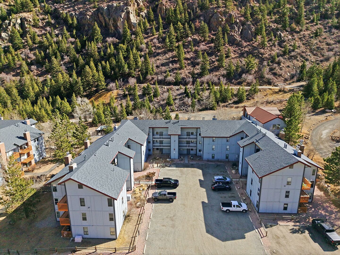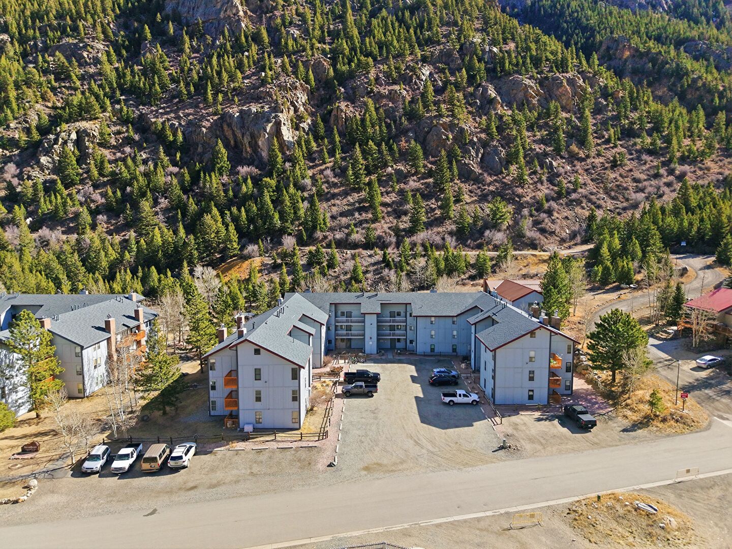Apartment Complex View, Curbs, Fence, Mountain View, Parking Lot, Street, Mountain View, Parking Lot