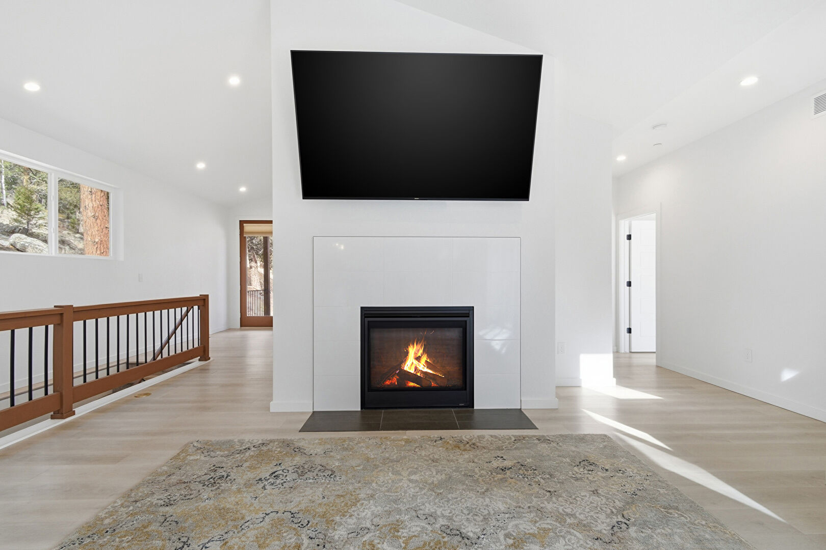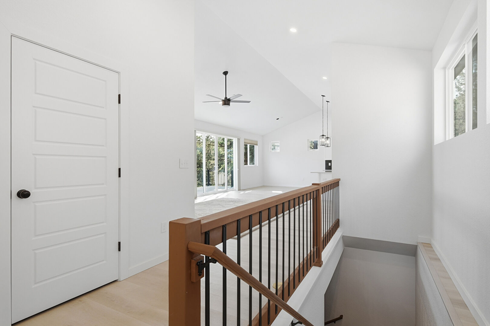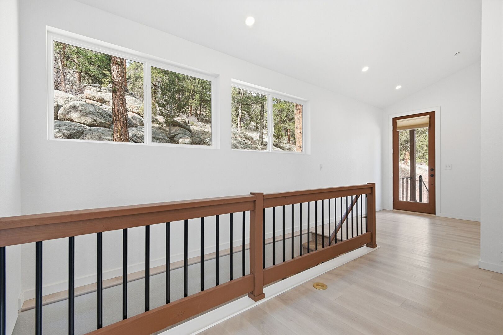Baseboards Wall, Drywall, Natural Light, Recessed Lighting, Upstairs Landing, Vaulted Ceiling, Wood Finish Floor, Natural Light, Upstairs Landing
