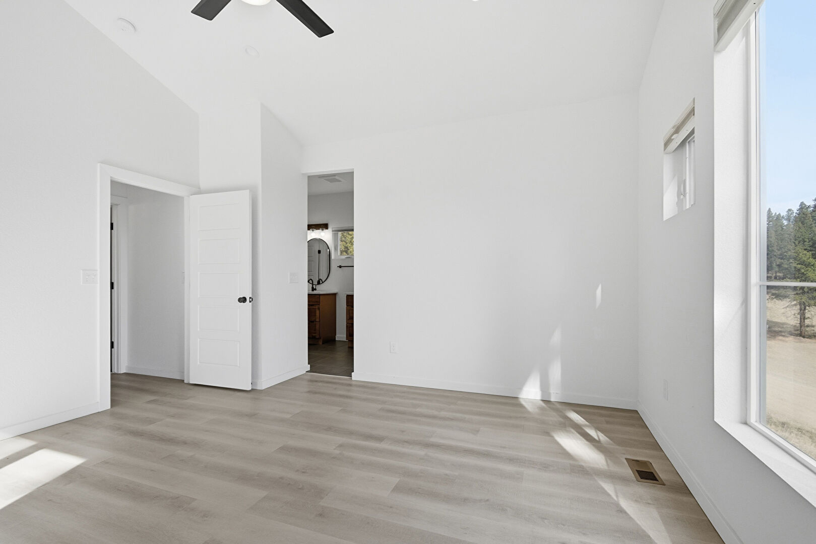 Baseboards Wall, Carpet, Ceiling Fan, Closet, Drywall, Ensuite Bathroom, High Ceiling, Natural Light, Recessed Lighting, Vaulted Ceiling, Vent, Wood Finish Floor, Carpet, Cathedral Ceiling, Natural Light, Recessed Lighting, Vaulted Ceiling