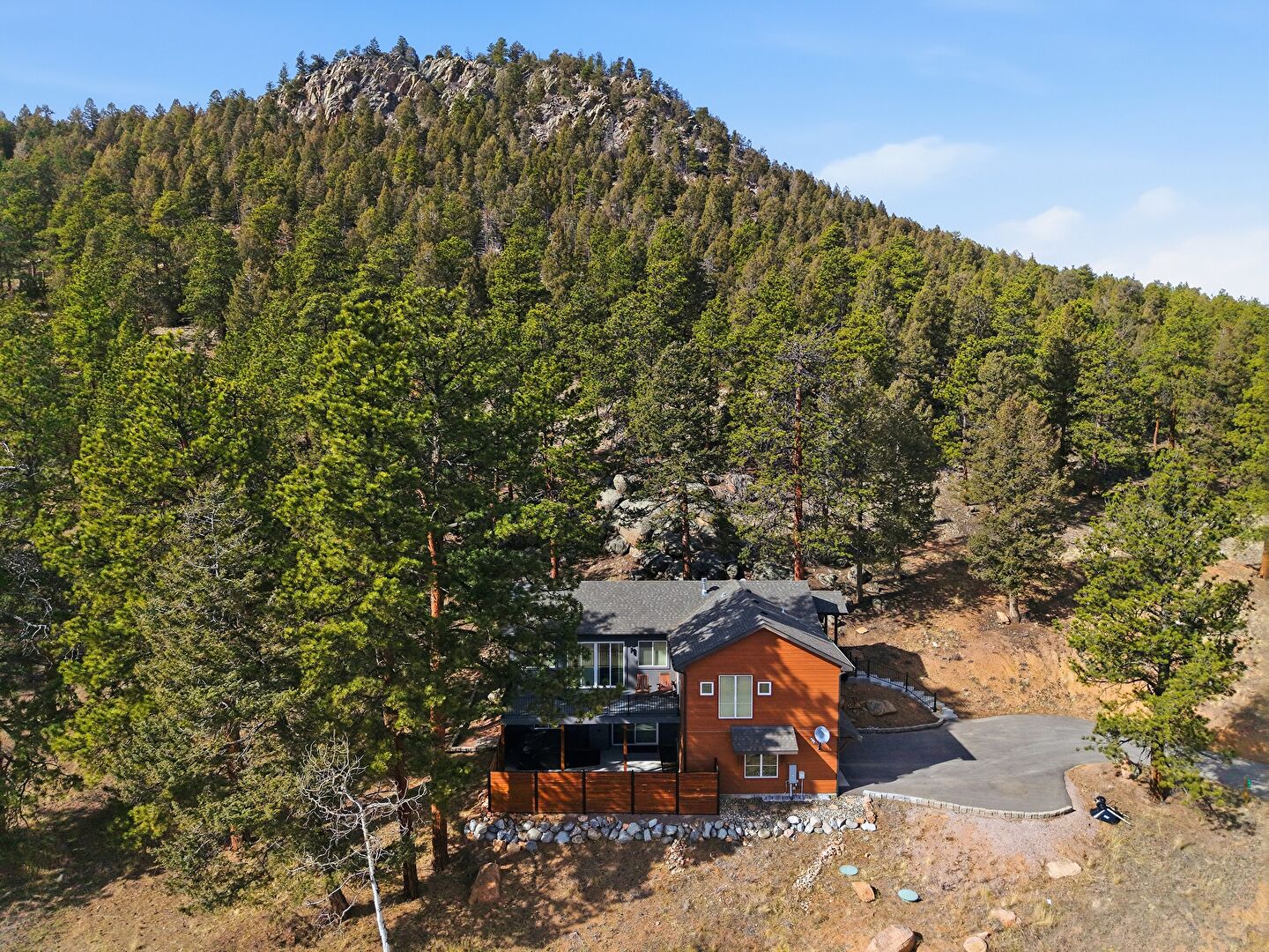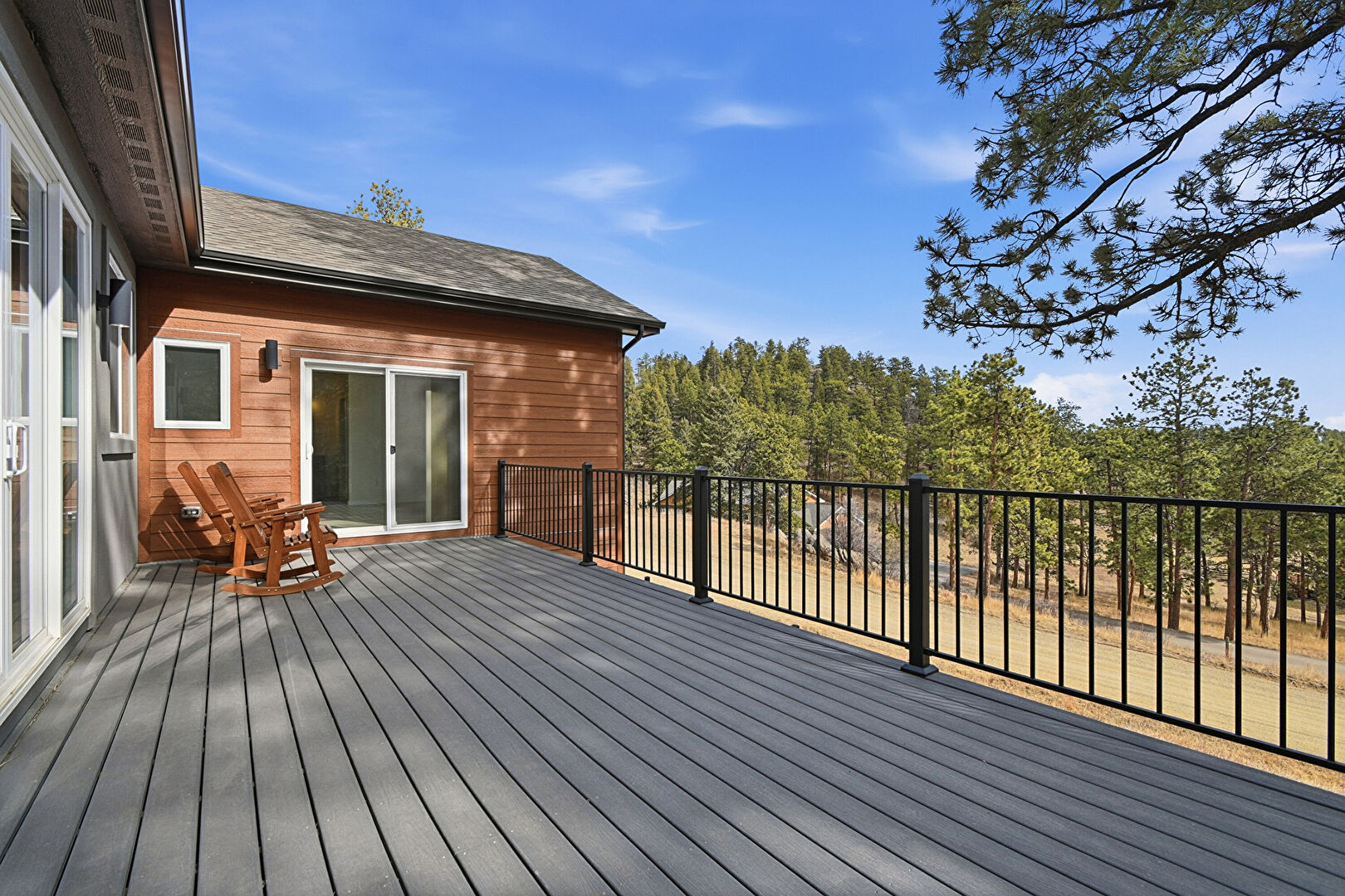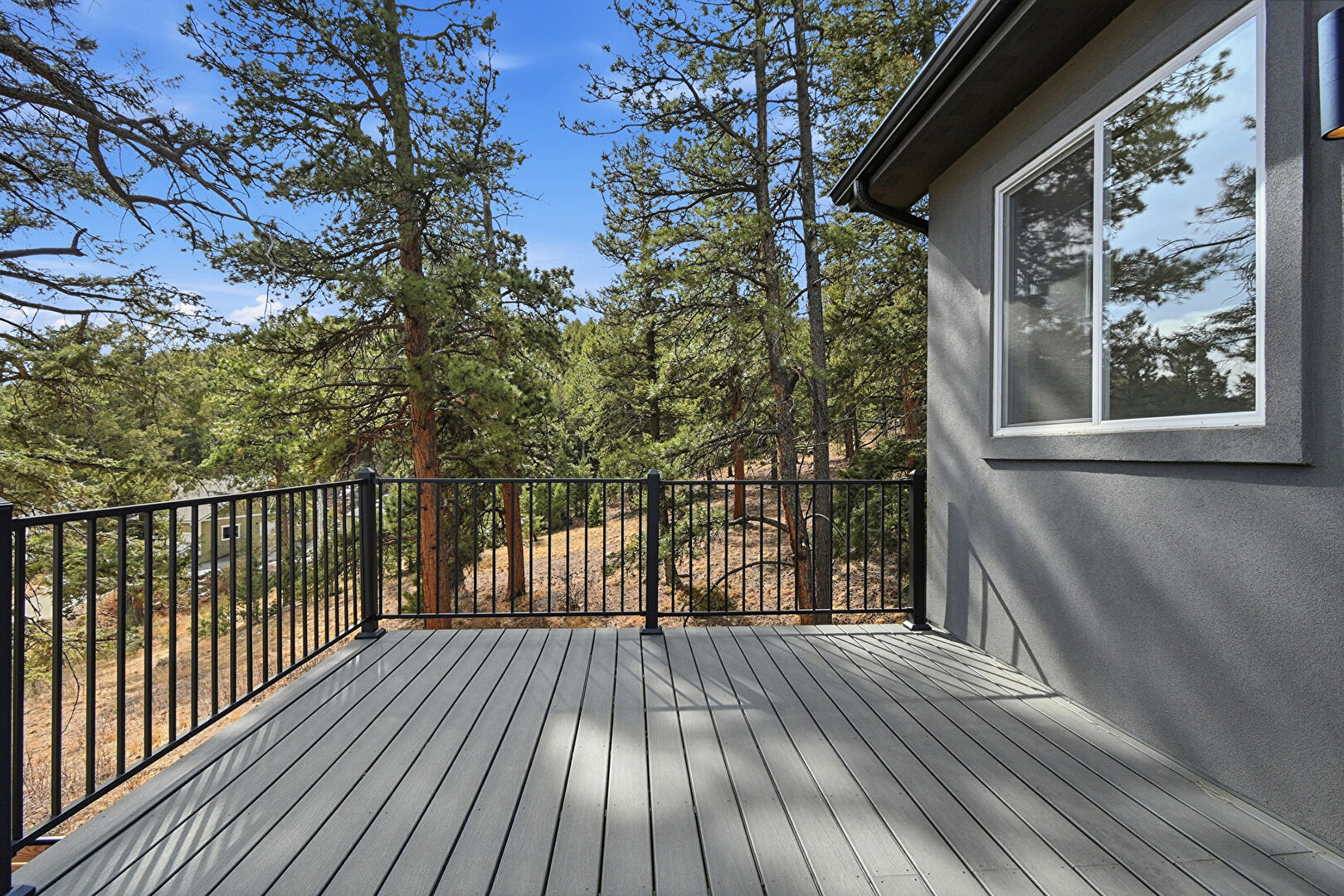 Downspout, Gutters, Horizontal Siding, Satellite Dish, Shingle Roof, Woods View, Deck