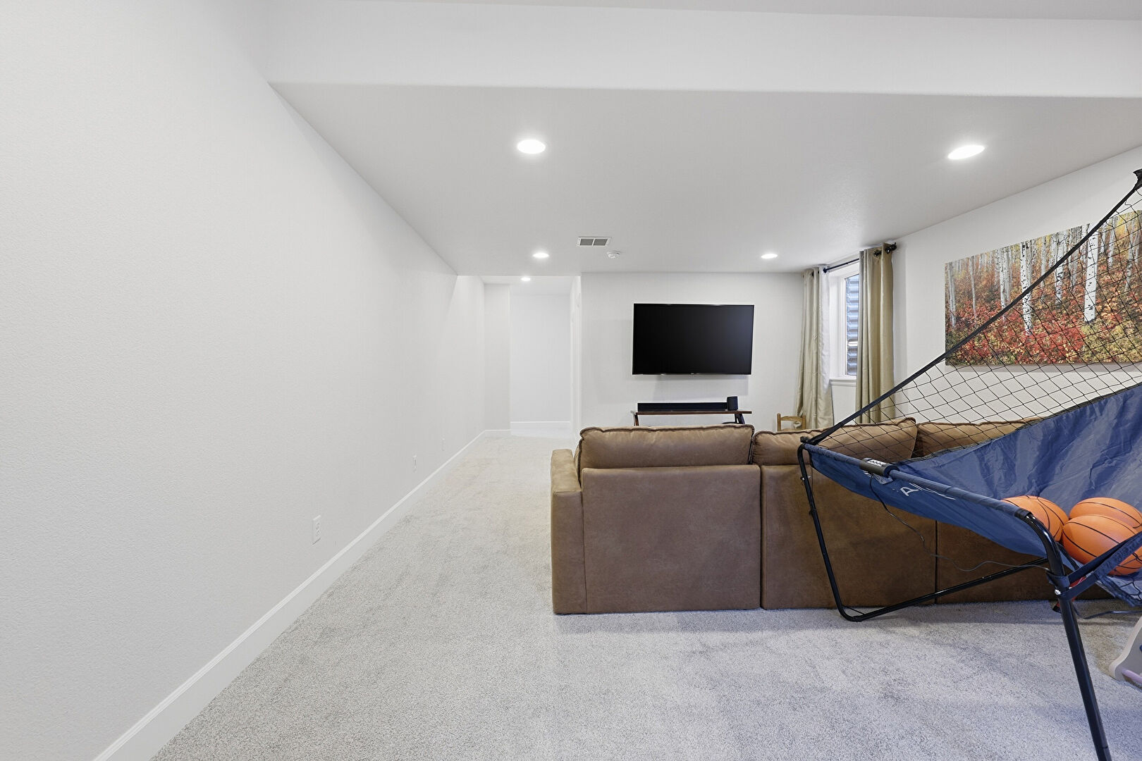 Baseboards Wall, Basement, Carpet, Drywall, Natural Light, Recessed Lighting, Vent, Baseboards Wall, Carpet, Drywall