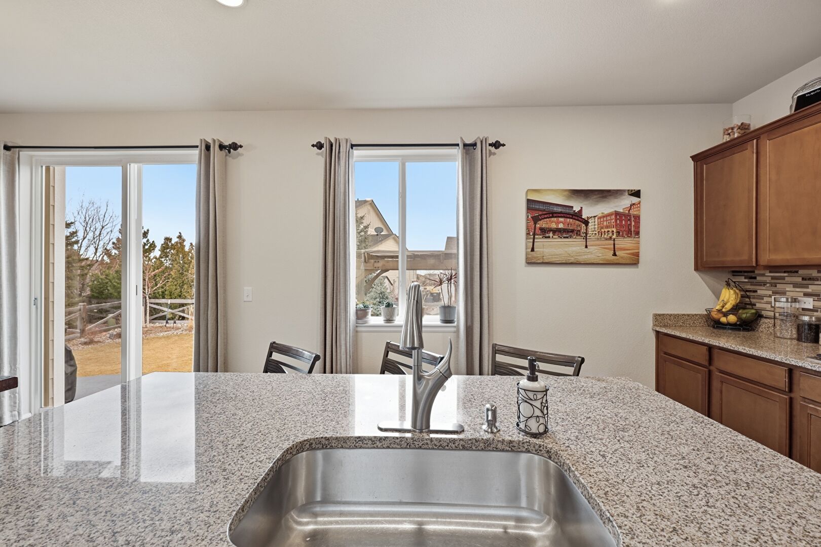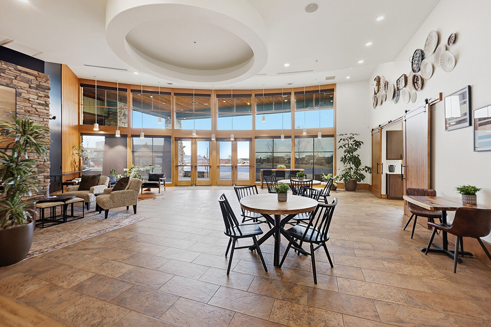 Barn Door, Baseboards Wall, Dark Brown Cabinets, Drywall, Fence, Flat Panel Cabinets, Gate, High Ceiling, Kitchen Island, Natural Light, Recessed Lighting, Stone Countertops, Stone Finish Floor, Tray Ceiling, Vent, Wood Finish Floor, French Doors, Pool, Tennis Court, Tray Ceiling, Vent