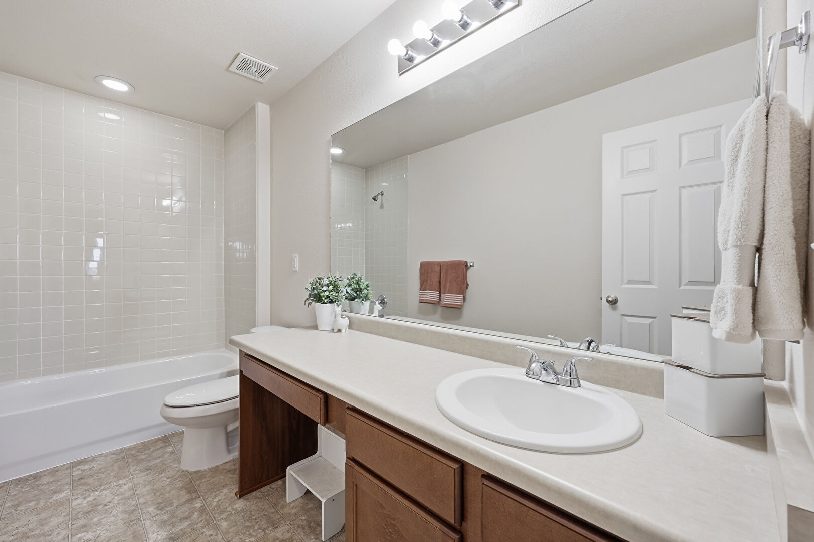 Baseboards Wall, Drywall, Full Bathroom, Half Bathroom, Recessed Lighting, Vanity, Vent, Combined Bath Shower, Tile Floor, Vent