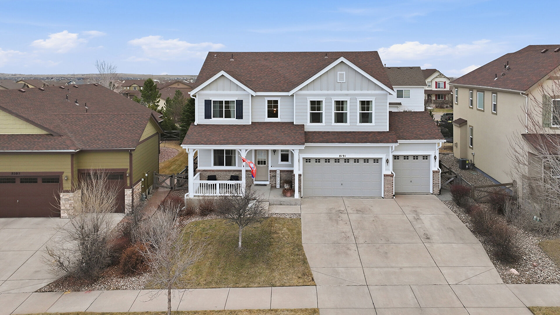 Board Batten Siding, Built In Garage, Central Ac, Downspout, Entry Steps, Fence, Grill, Gutters, Horizontal Siding, Mountain View, Parking Lot View, Porch, Residential View, Shingle Roof, Vertical Siding, Driveway, Patio, Residential View