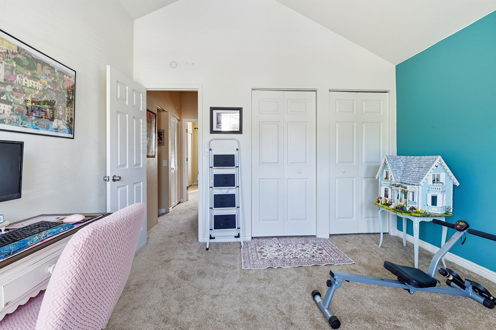 Baseboards Wall, Carpet, Drywall, High Ceiling, Natural Light, Office Area, Vaulted Ceiling, Baseboards Wall, Cathedral Ceiling