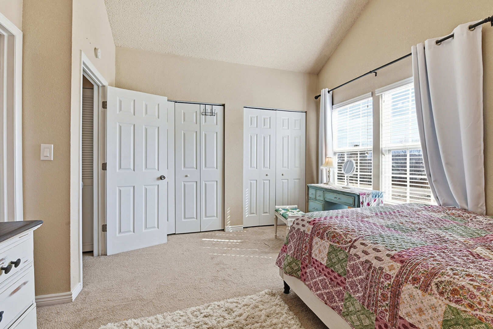 Baseboards Wall, Carpet, Cathedral Ceiling, Closet, Drywall, Ensuite Bathroom, High Ceiling, Natural Light, Textured Ceiling, Two Closets, Vaulted Ceiling, Carpet, Textured Ceiling, Vaulted Ceiling