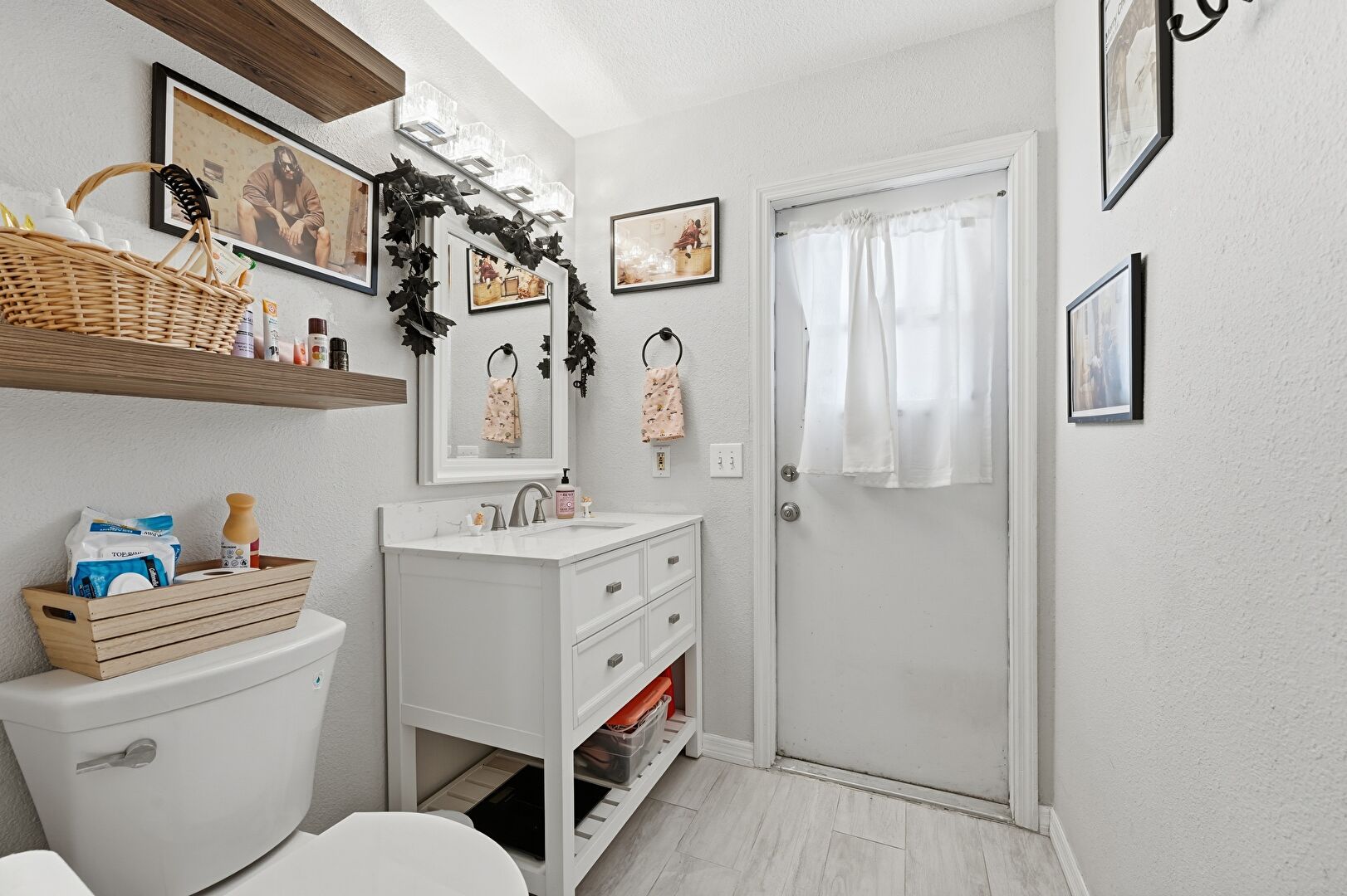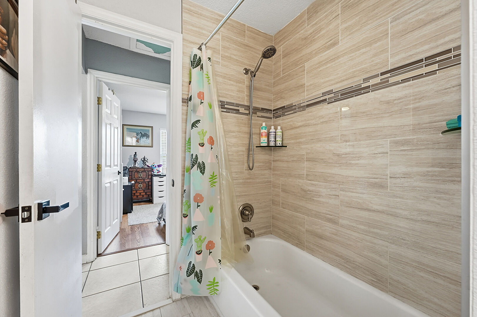 Baseboards Wall, Drywall, Full Bathroom, Half Bathroom, Textured Wall, Tile Floor, Vanity, Combined Bath Shower, Natural Light