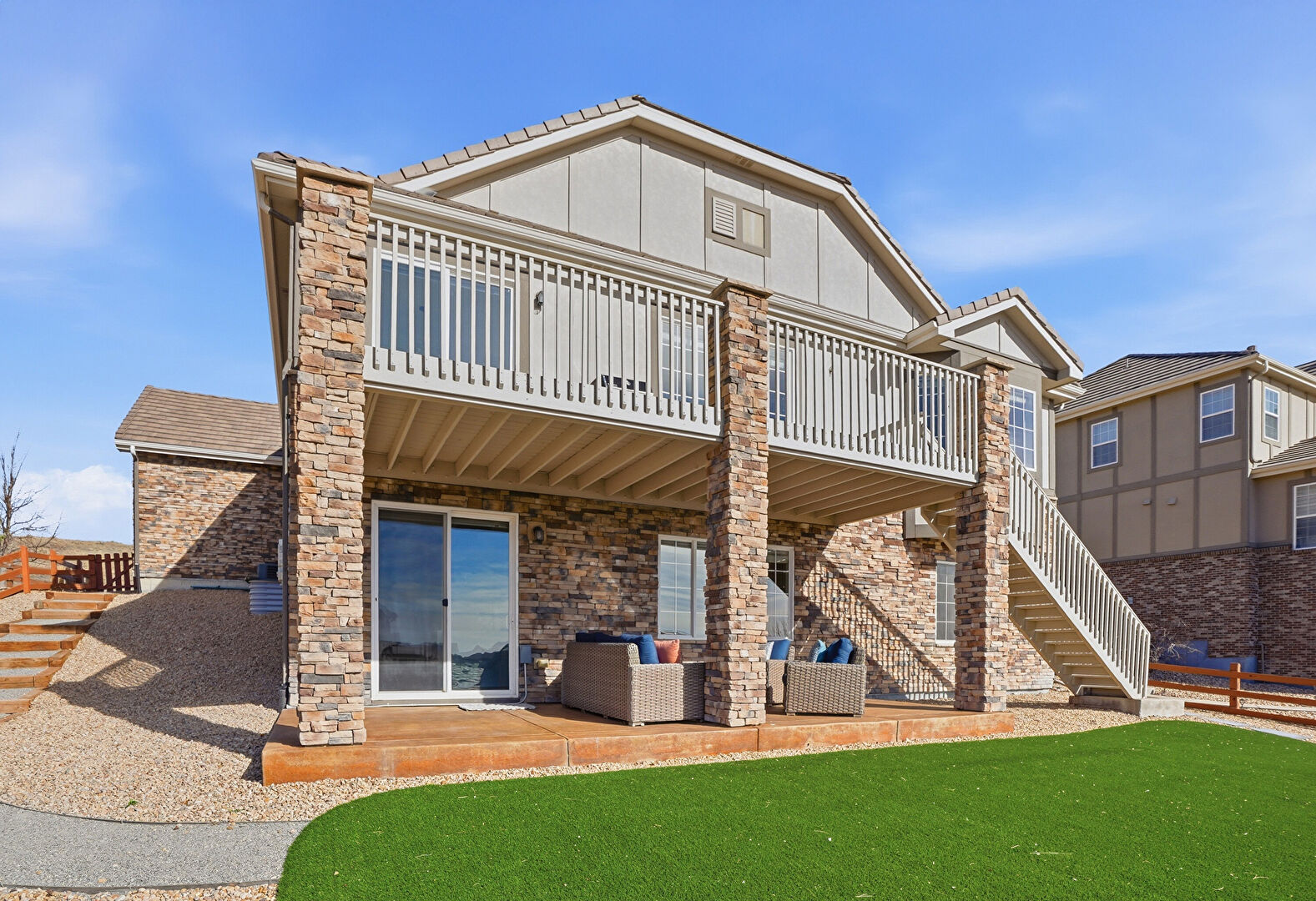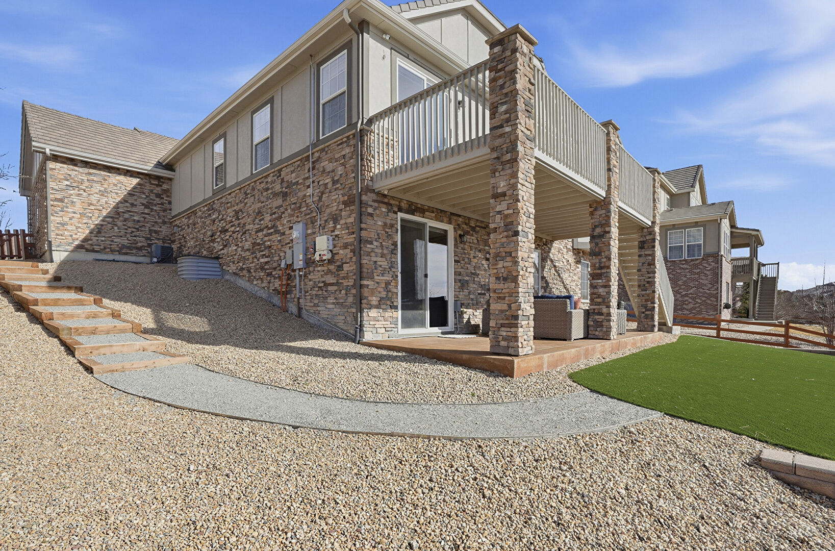 Balcony, Basement Walk Out, Board Batten Siding, Brick Siding, Central Ac, Concrete Foundation, Deck, Downspout, Fence, Gutters, Lawn, Outdoor Living Space, Patio, Residential View, Shingle Roof, Solar Power Inverter, Stairs, Stone Siding, Stucco Siding, Vertical Siding, Concrete Foundation, Deck, Gutters, Patio, Stairs, Stone Siding, Vertical Siding