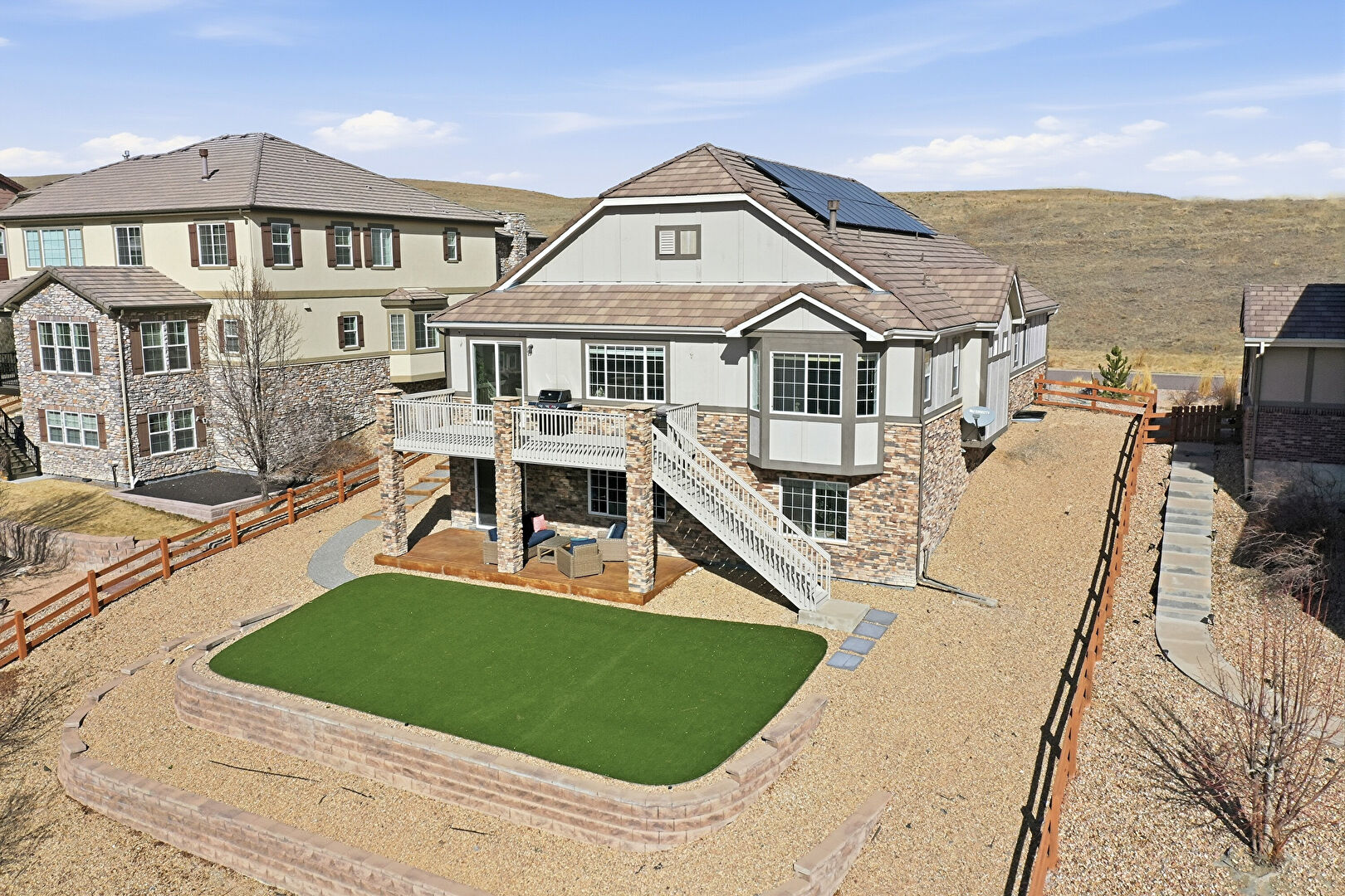 Balcony, Board Batten Siding, Central Ac, Deck, Downspout, Fence, Gutters, Lawn, Outdoor Living Space, Patio, Solar Panels, Stairs, Stone Siding, Stucco Siding, Vertical Siding, Balcony, Deck, Stucco Siding