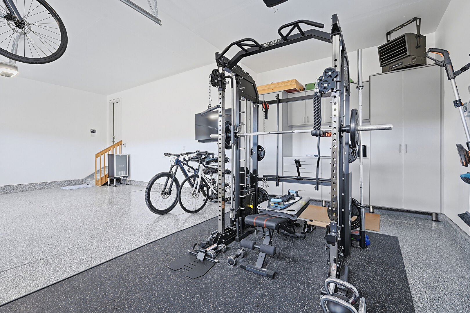 Baseboards Wall, Ceiling Mounted Heater, Drywall, Garage, Garage Door Opener, Baseboards Wall, Drywall