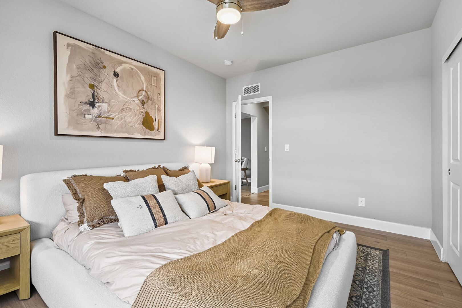 Baseboards Wall, Ceiling Fan, Closet, Drywall, Natural Light, Vent, Wood Finish Floor, Drywall, Wood Finish Floor