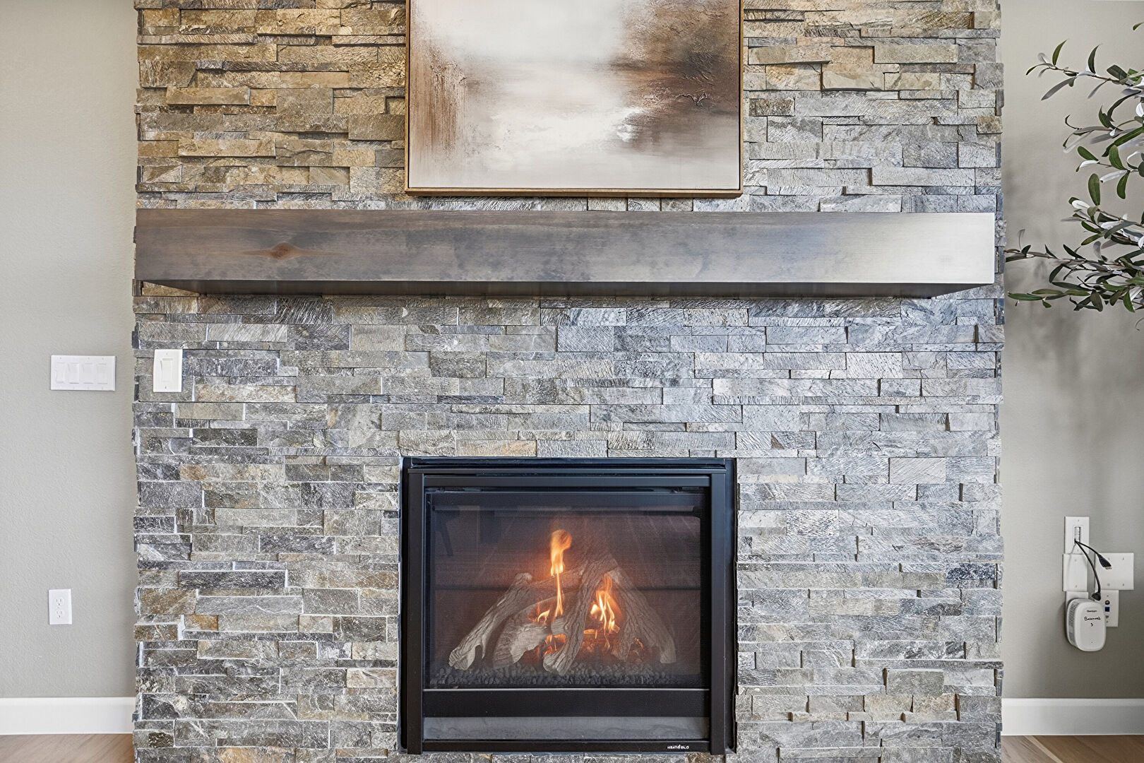 Drywall, Fireplace, Wood Finish Floor, Baseboards Wall