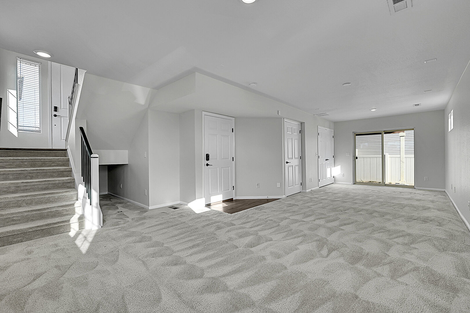 Baseboards Wall, Carpet, Drywall, Natural Light, Recessed Lighting, Stairs, Vent, Wood Finish Floor, Baseboards Wall, Natural Light