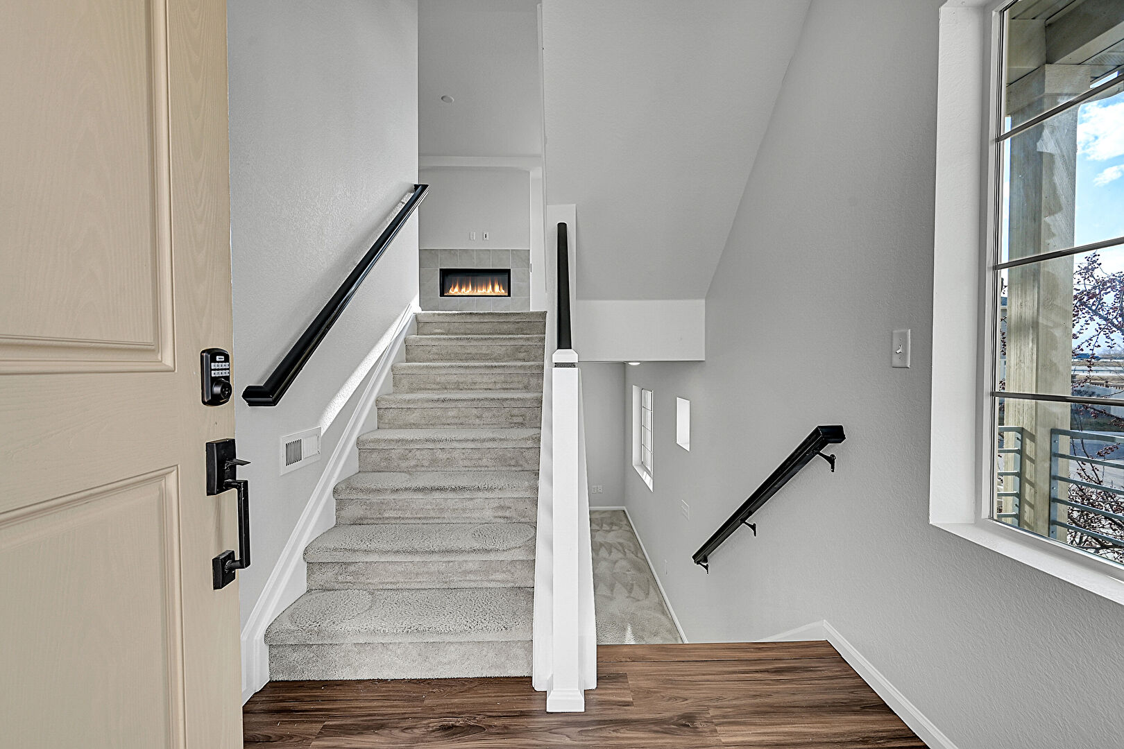 Baseboards Wall, Natural Light, Stairs, Textured Wall, Vent, Wood Finish Floor, Fireplace