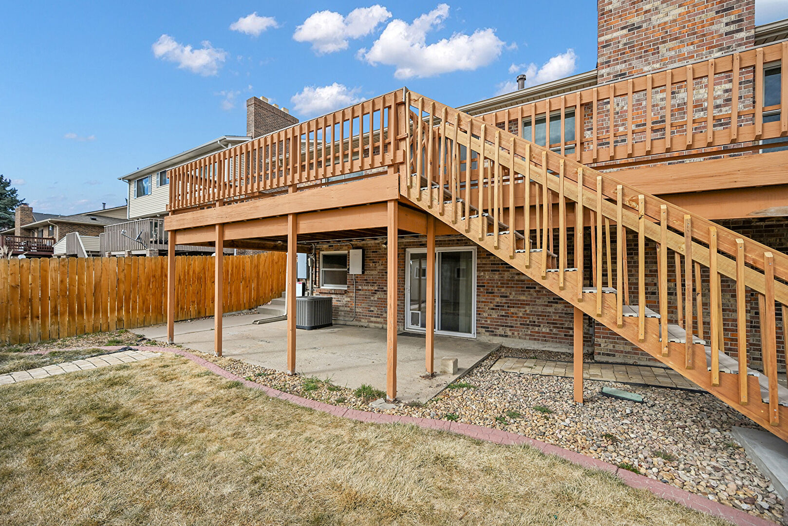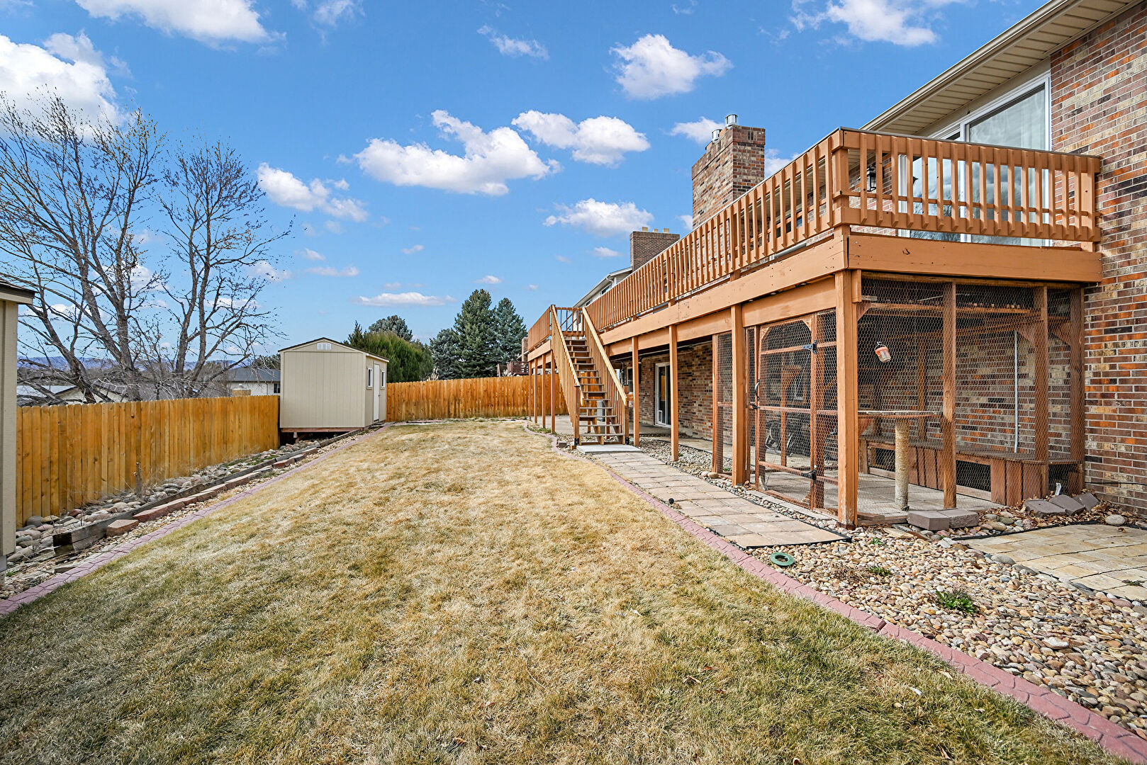 Fence, Lawn, Outdoor Structure, Patio, Shed, Stairs, Deck, Patio