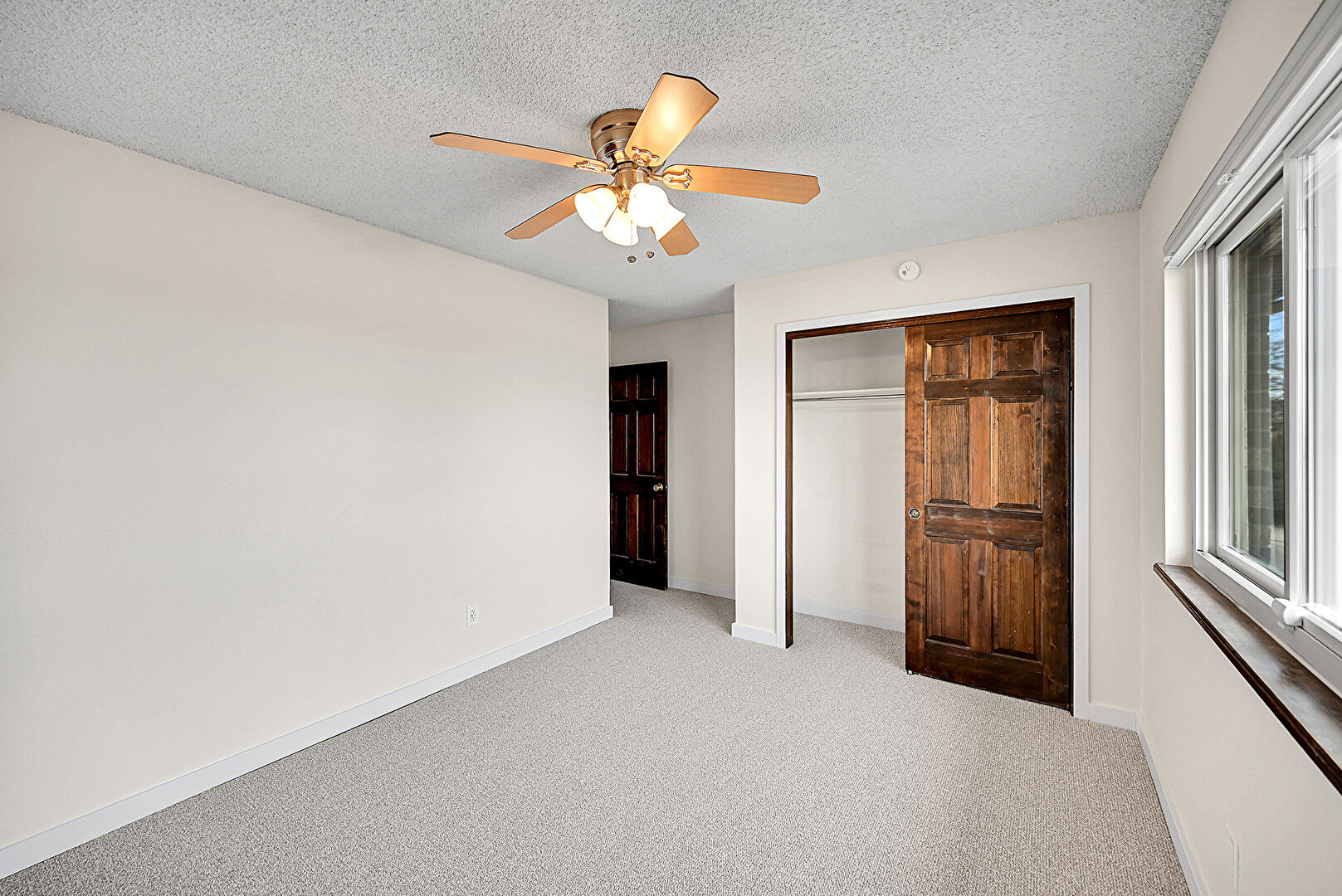 Baseboards Wall, Carpet, Ceiling Fan, Closet, Drywall, Natural Light, Textured Ceiling, Vent, Baseboards Wall, Textured Ceiling