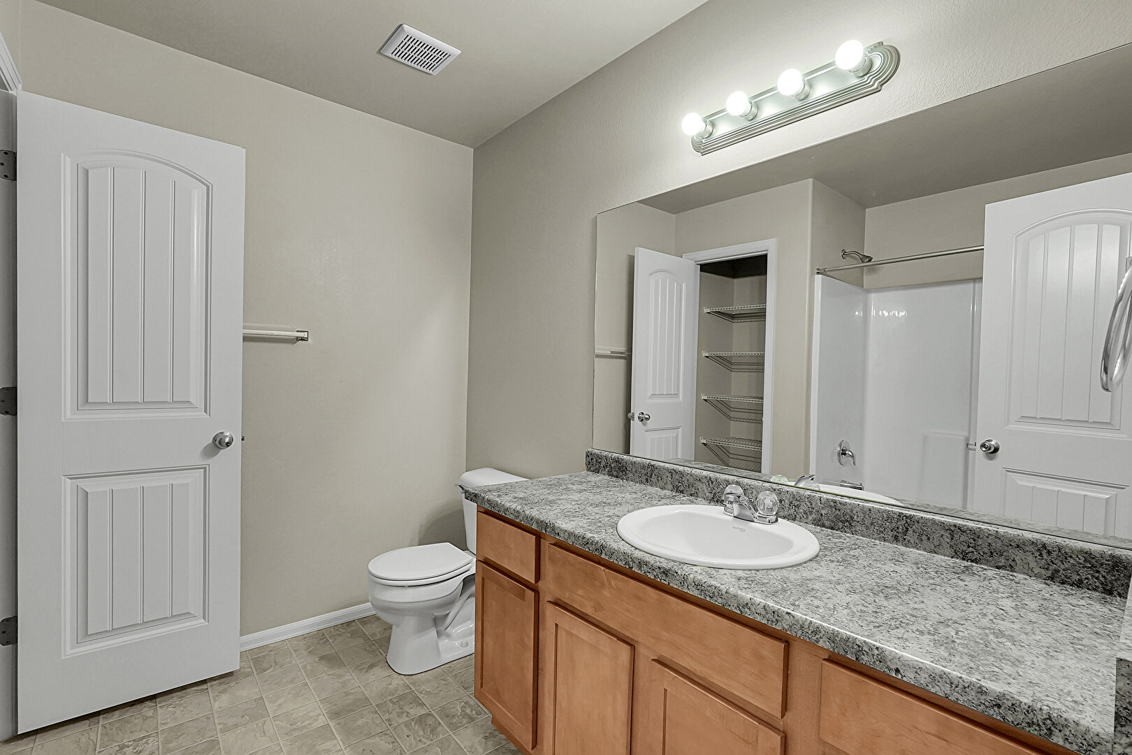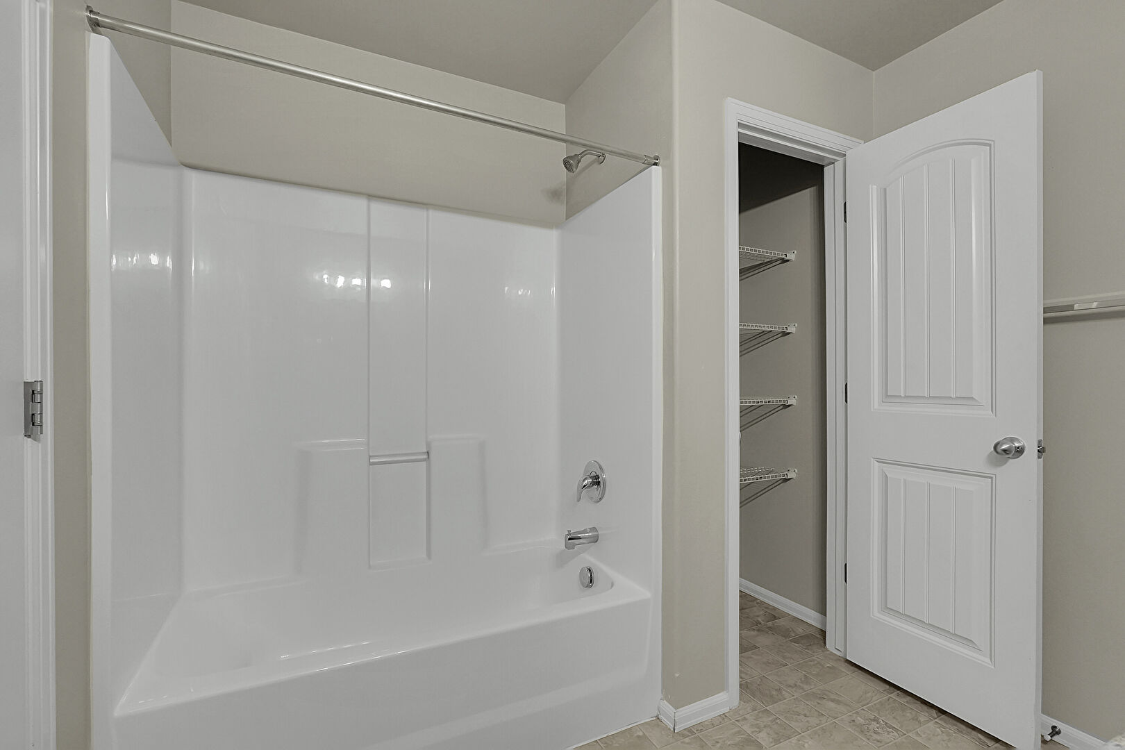 Baseboards Wall, Combined Bath Shower, Drywall, Full Bathroom, Vanity, Vent, Walk In Closet, Baseboards Wall, Drywall
