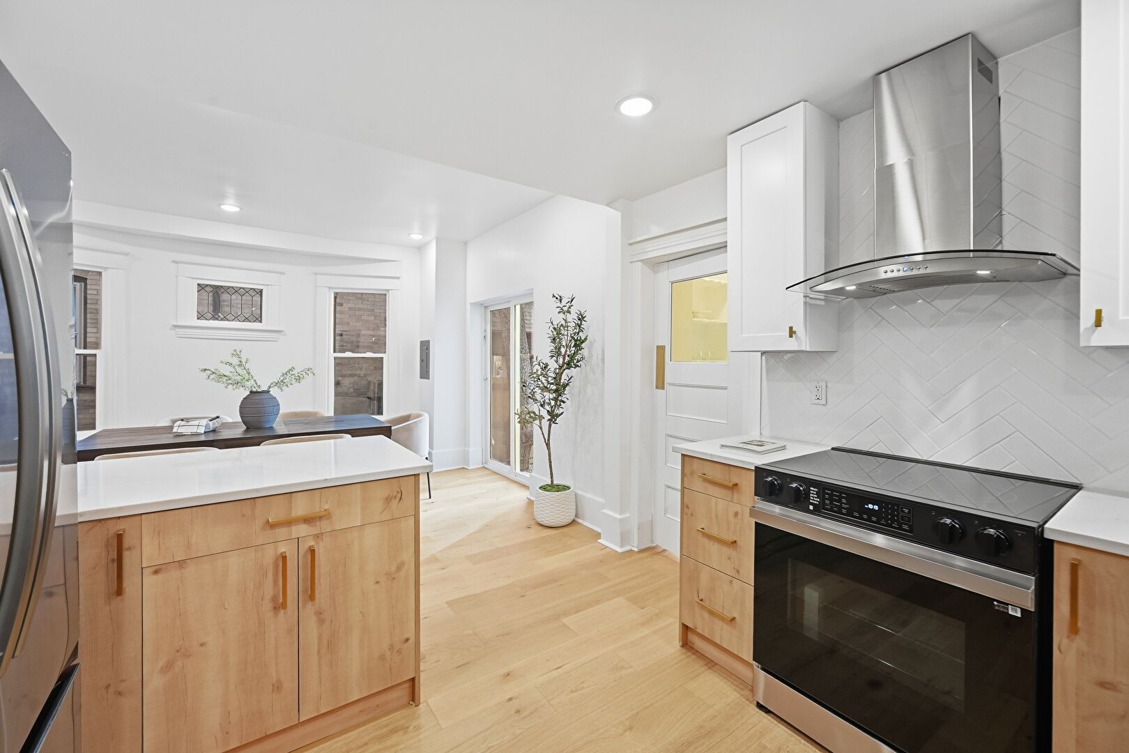 Baseboards Wall, Drywall, Electric Panel, Natural Light, Recessed Lighting, Vent, Wood Finish Floor, Baseboards Wall, Drywall, G Shaped Kitchen