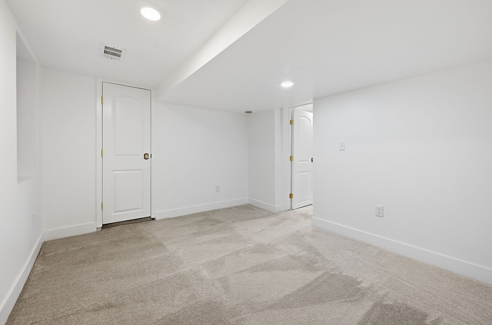 Baseboards Wall, Basement, Carpet, Drywall, Natural Light, Recessed Lighting, Vent, Baseboards Wall, Basement, Carpet, Vent