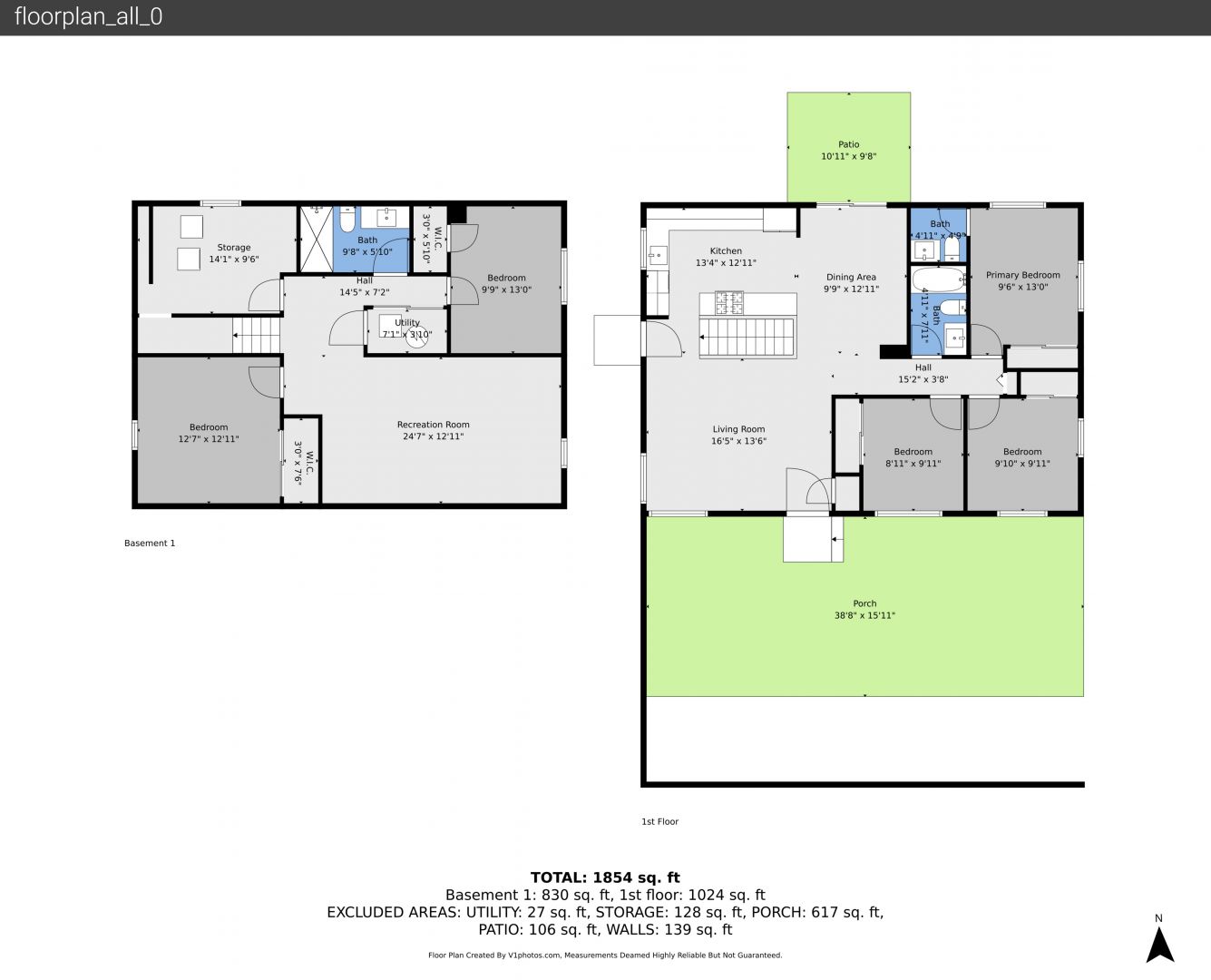 Baseboards Wall, Full Bathroom, Half Bathroom, Marble Finish Floor, Textured Ceiling, Tile Floor, Vanity, Vent, Textured Wall