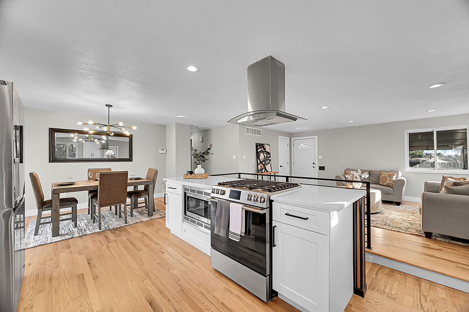 Baseboards Wall, Drywall, Natural Light, Notable Chandelier, Recessed Lighting, Textured Ceiling, Vent, Wood Finish Floor, Baseboards Wall, Wood Finish Floor