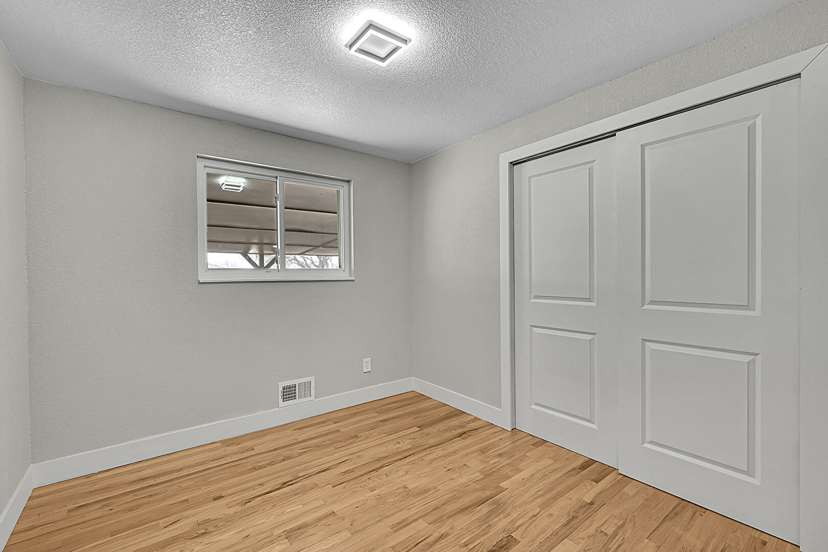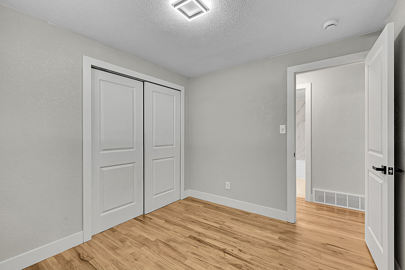 Baseboards Wall, Closet, Drywall, Natural Light, Smoke Carbon Monoxide Detector, Textured Ceiling, Textured Wall, Vent, Wood Finish Floor, Natural Light, Textured Ceiling, Vent