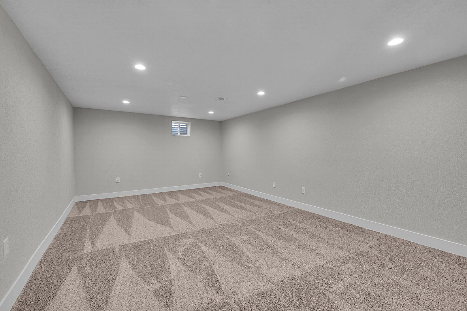 Basement, Carpet, Recessed Lighting, Textured Ceiling, Textured Wall, Baseboards Wall