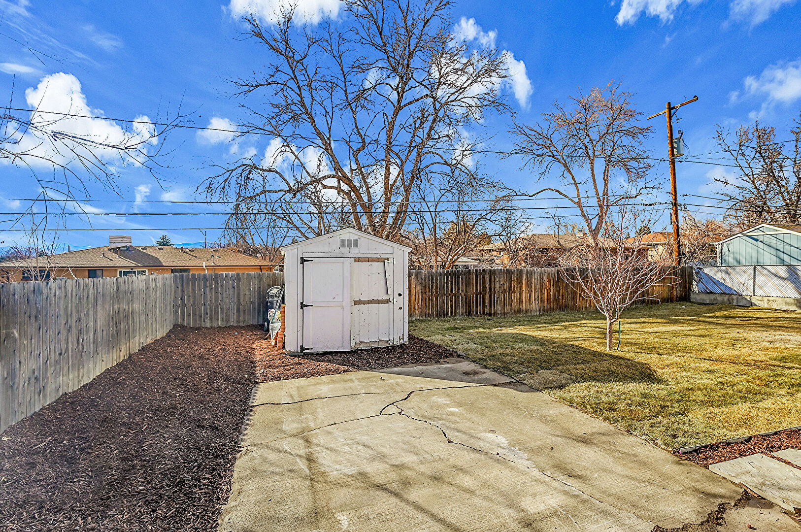 Fence, Lawn, Outdoor Structure, Patio, Shed, Fence, Lawn