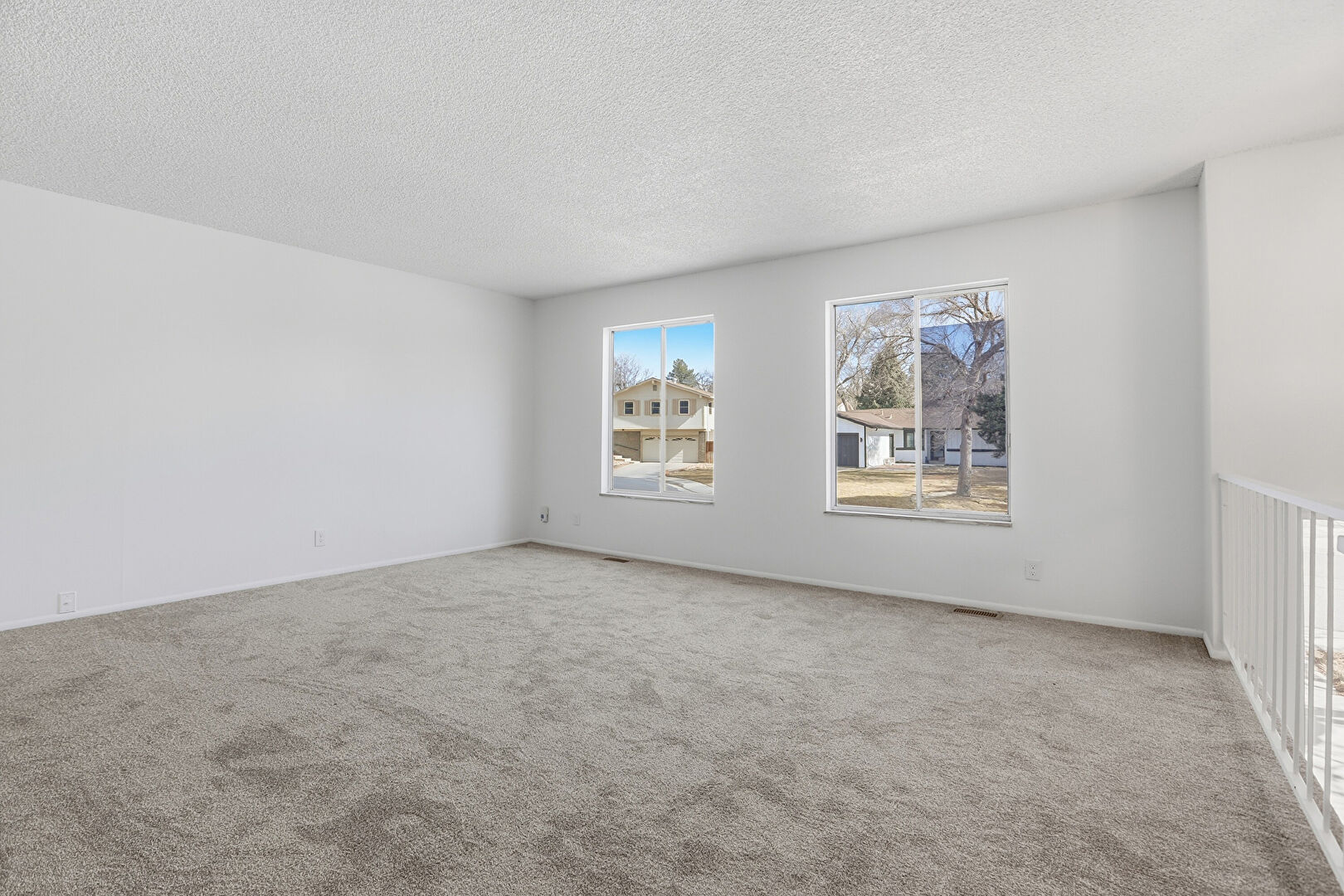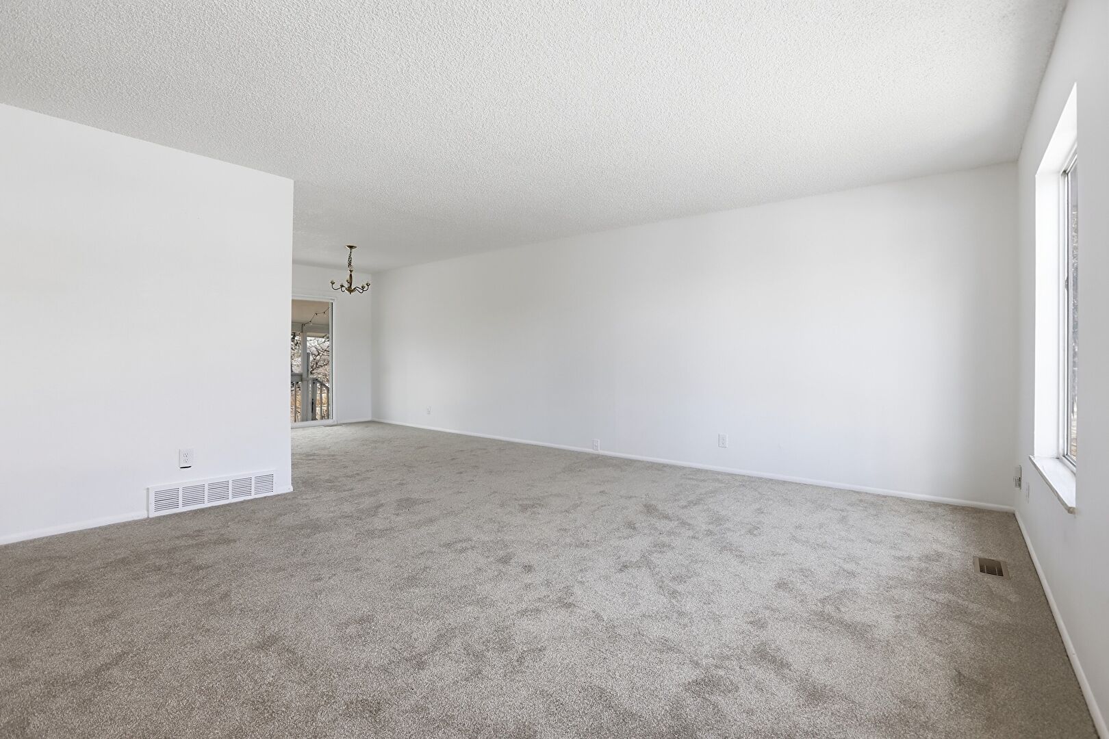 Baseboards Wall, Carpet, Drywall, Natural Light, Notable Chandelier, Textured Ceiling, Vent, Carpet, Textured Ceiling