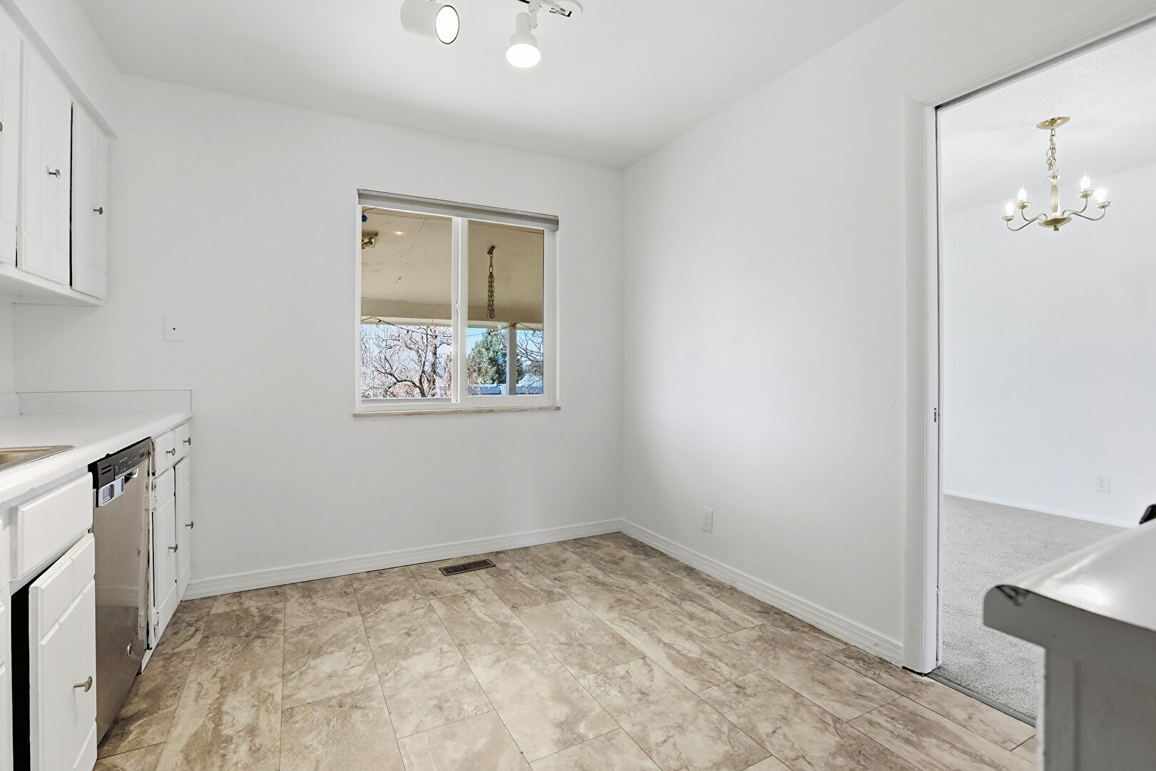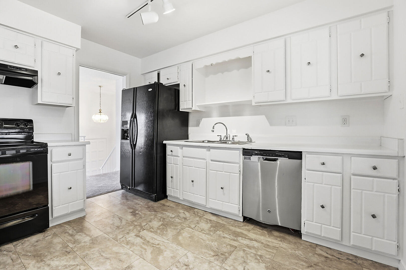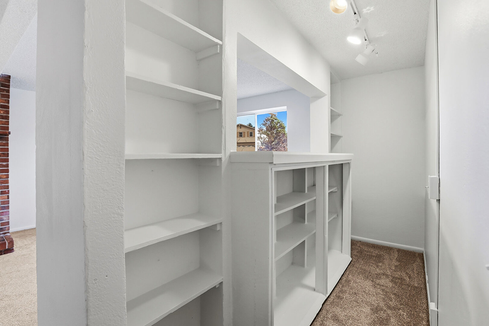 Baseboards Wall, Carpet, Drywall, Natural Light, Notable Chandelier, Open Shelves, Pendant Lighting, Shaker Cabinets, Track Lighting, Vent, Visible Hinge Cabinets, Drywall, Vent