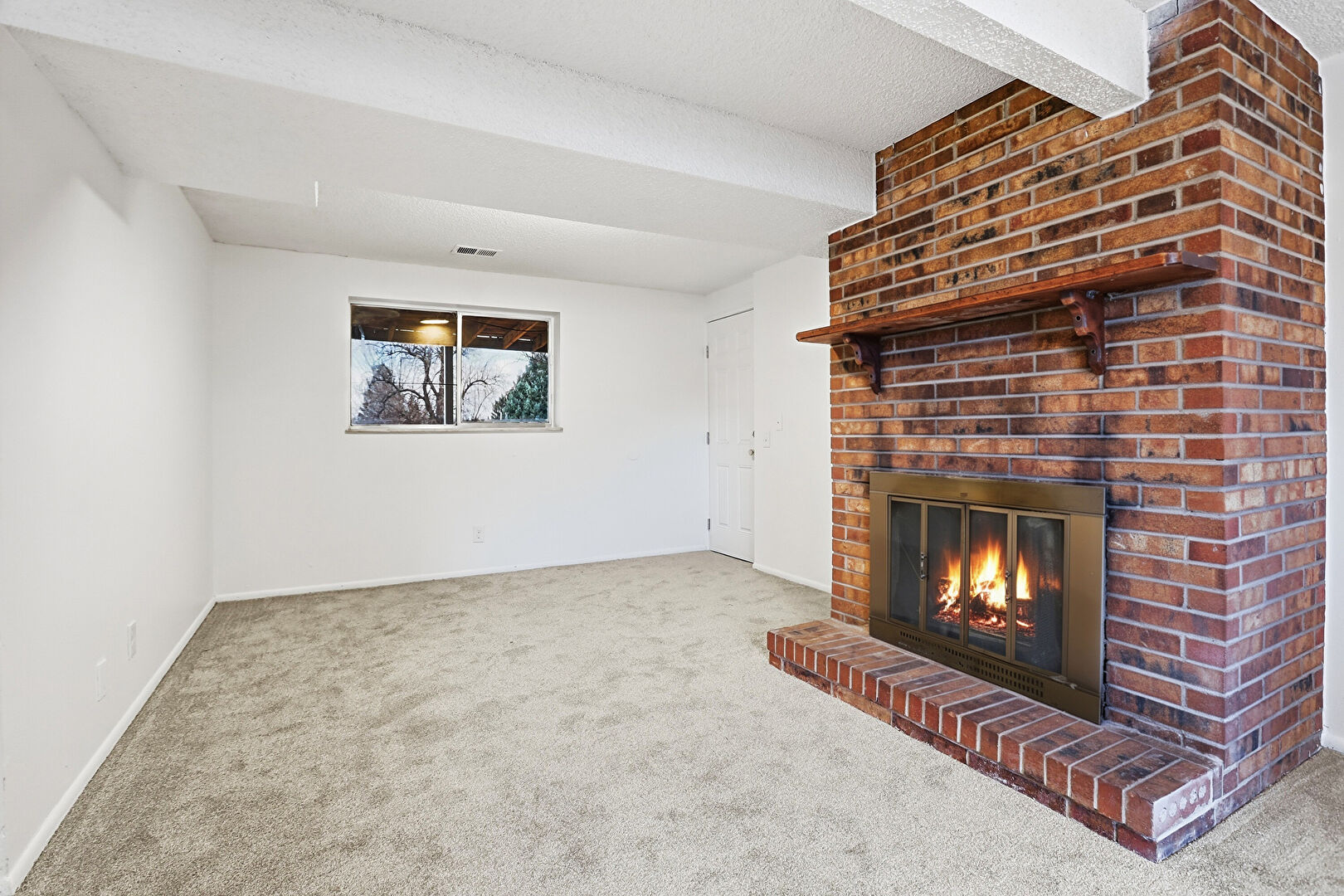 Baseboards Wall, Carpet, Drywall, Fireplace, Natural Light, Notable Chandelier, Textured Ceiling, Vent, Baseboards Wall, Basement, Carpet, Drywall, Natural Light, Notable Chandelier