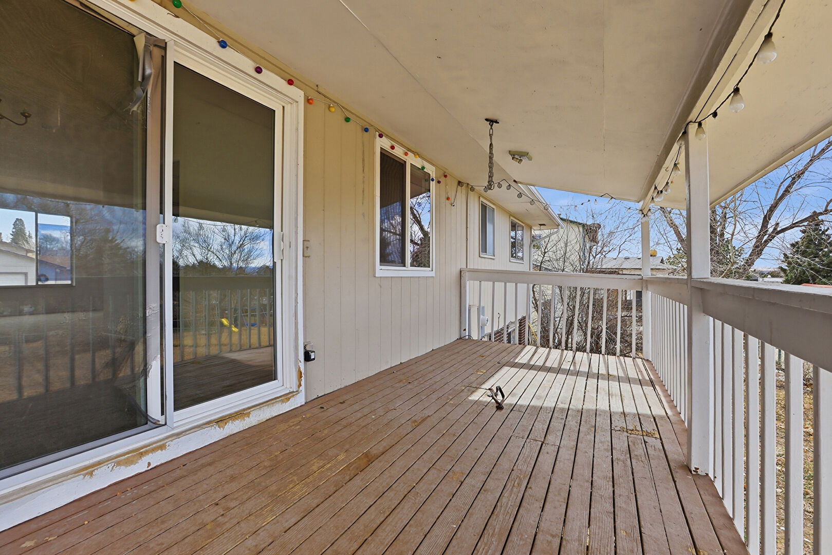 Brick Siding, Central Ac, Chimney, Deck, Downspout, Fence, Gate, Patio, Residential View, Shingle Roof, Stairs, Vertical Siding, Deck, Gutters
