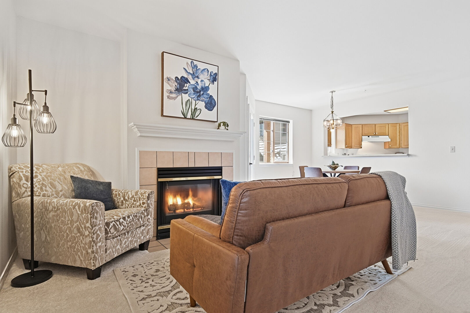 Baseboards Wall, Carpet, Drywall, Fireplace, Natural Light, Notable Chandelier, Recessed Lighting, Baseboards Wall, Drywall, Natural Light, Notable Chandelier