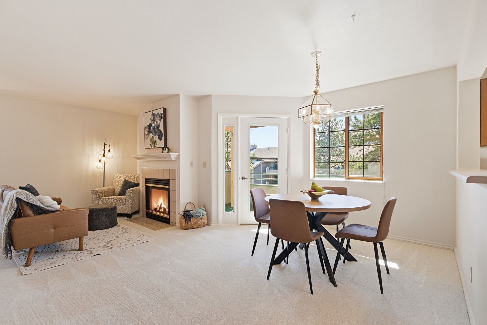 Baseboards Wall, Carpet, Drywall, Fireplace, Natural Light, Baseboards Wall, Natural Light