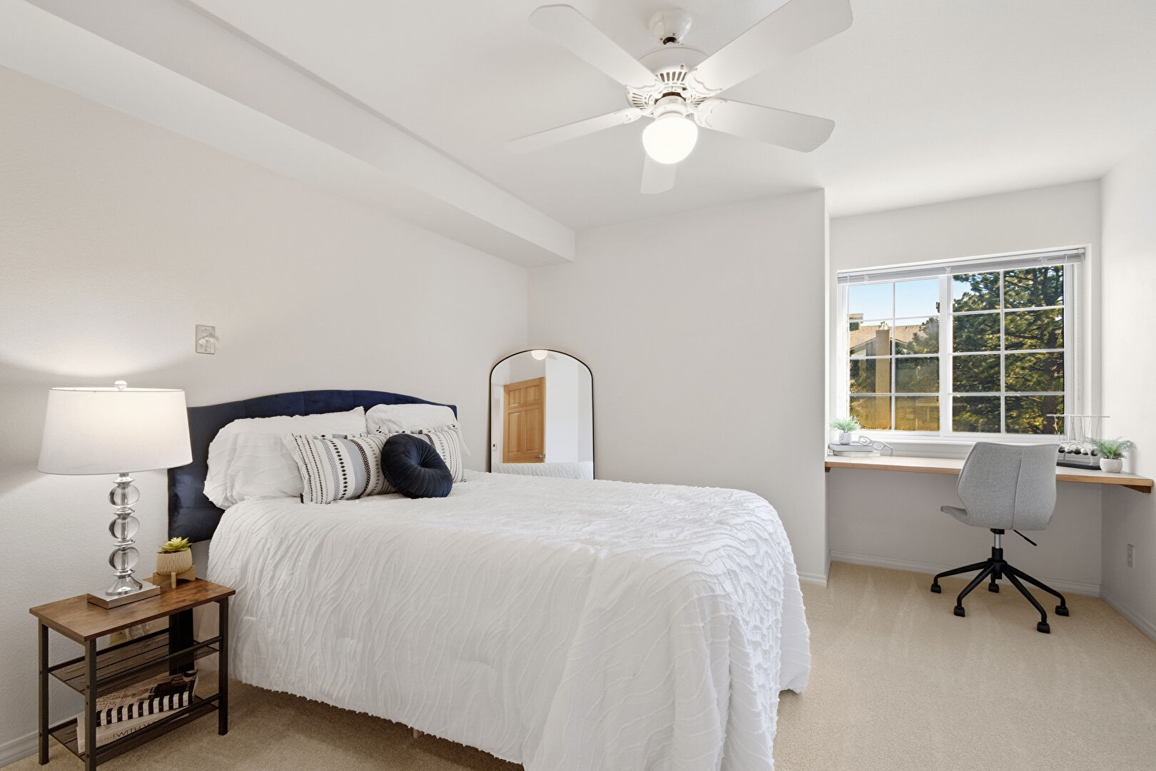 Baseboards Wall, Built In Desk, Carpet, Ceiling Fan, Drywall, Natural Light, Office Area, Walk In Closet, Built In Desk, Drywall, Ensuite Bathroom, Walk In Closet