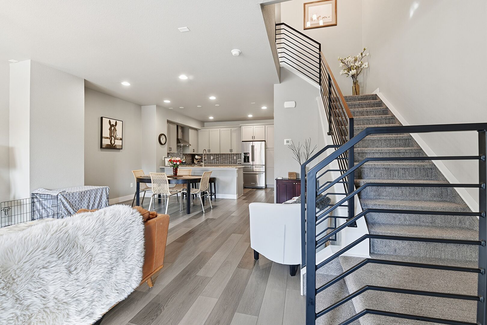 Baseboards Wall, Drywall, Natural Light, Recessed Lighting, Stairs, Vent, Wood Finish Floor