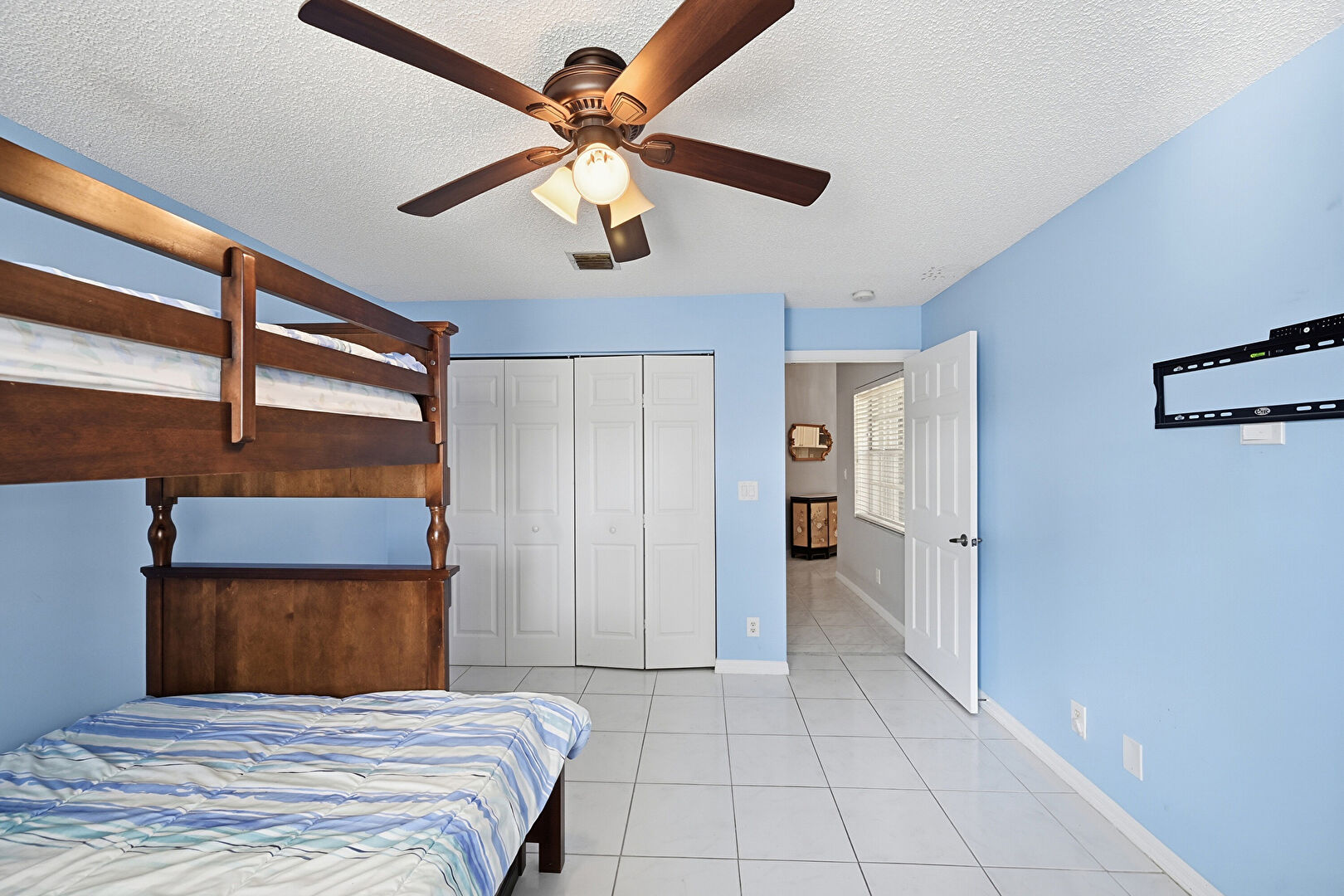 Baseboards Wall, Ceiling Fan, Closet, Drywall, Natural Light, Textured Ceiling, Tile Floor, Vent, Ceiling Fan, Textured Ceiling