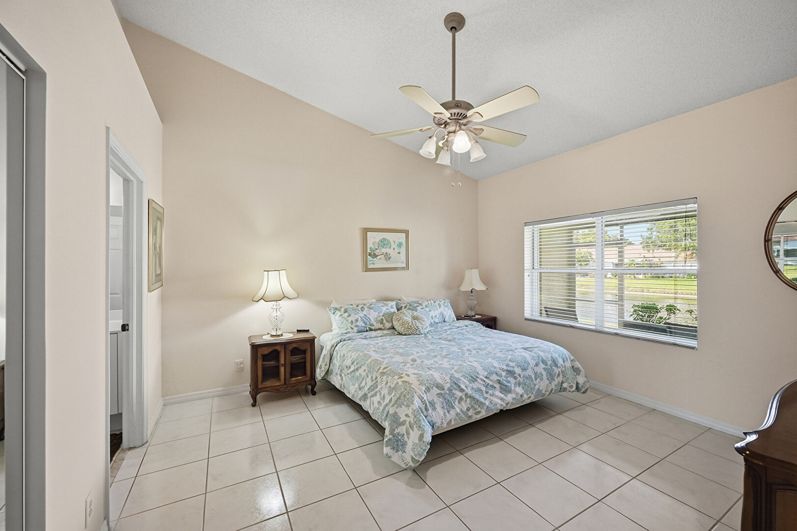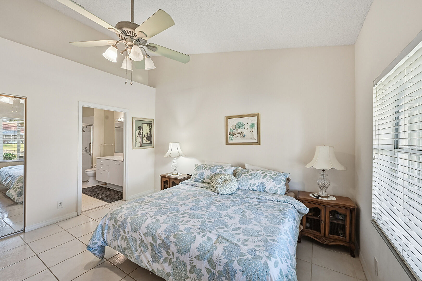 Baseboards Wall, Ceiling Fan, Closet, Drywall, Ensuite Bathroom, High Ceiling, Natural Light, Textured Ceiling, Tile Floor, Vaulted Ceiling, Vent, Baseboards Wall, Closet, Textured Ceiling, Vaulted Ceiling