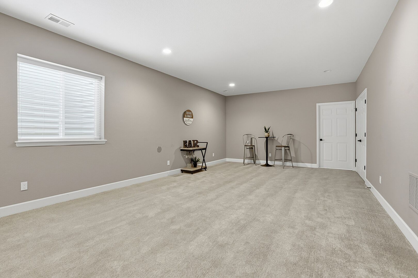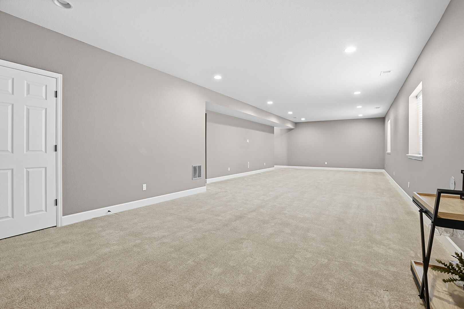 Baseboards Wall, Basement, Carpet, Drywall, Natural Light, Recessed Lighting, Vent, Carpet, Drywall, Natural Light, Recessed Lighting, Vent