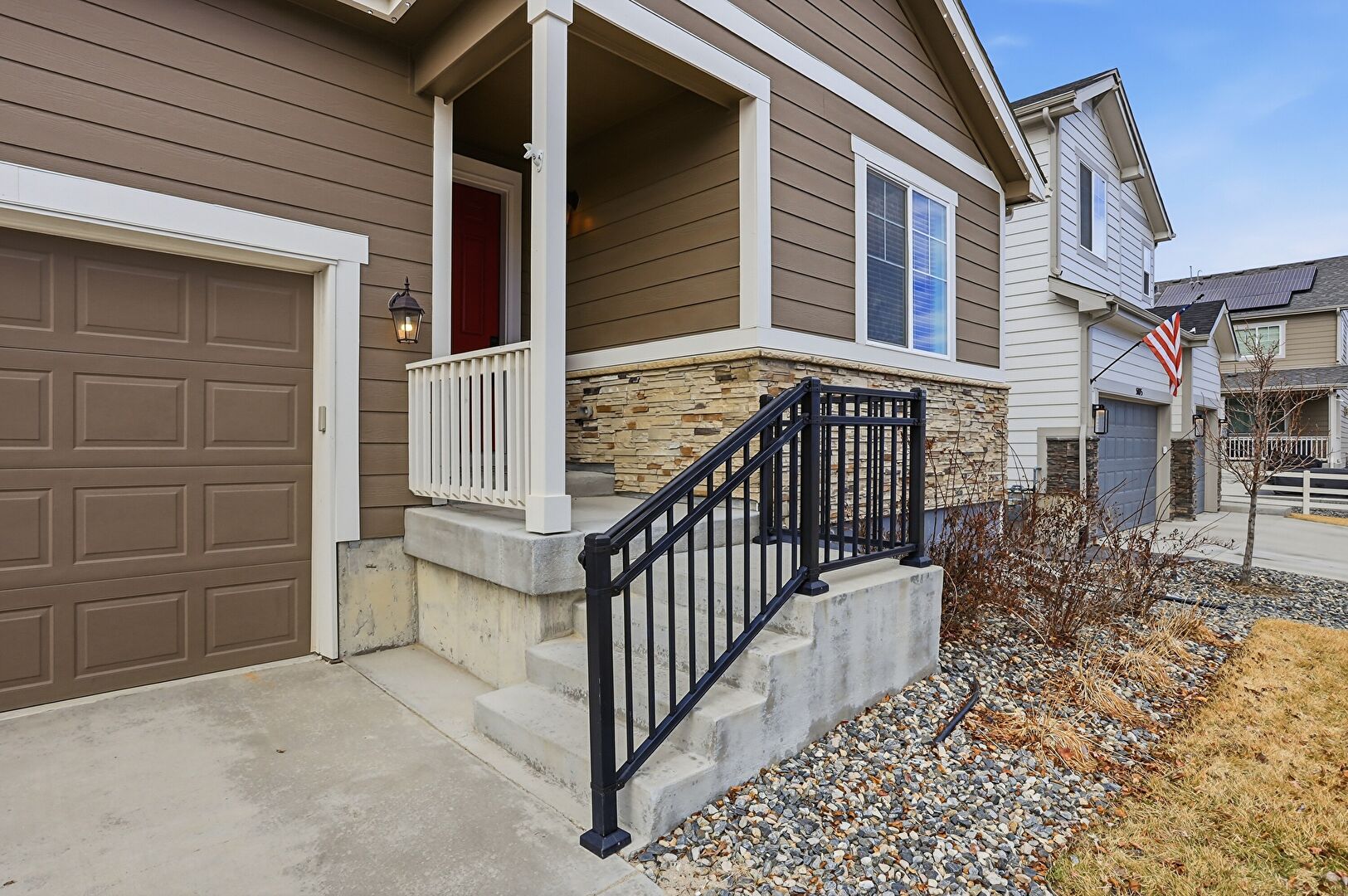Concrete Foundation, Downspout, Driveway, Fence, Gutters, Horizontal Siding, Lawn, Porch, Residential View, Shingle Roof, Stone Siding, Stoop, Concrete Foundation, Horizontal Siding, Stoop