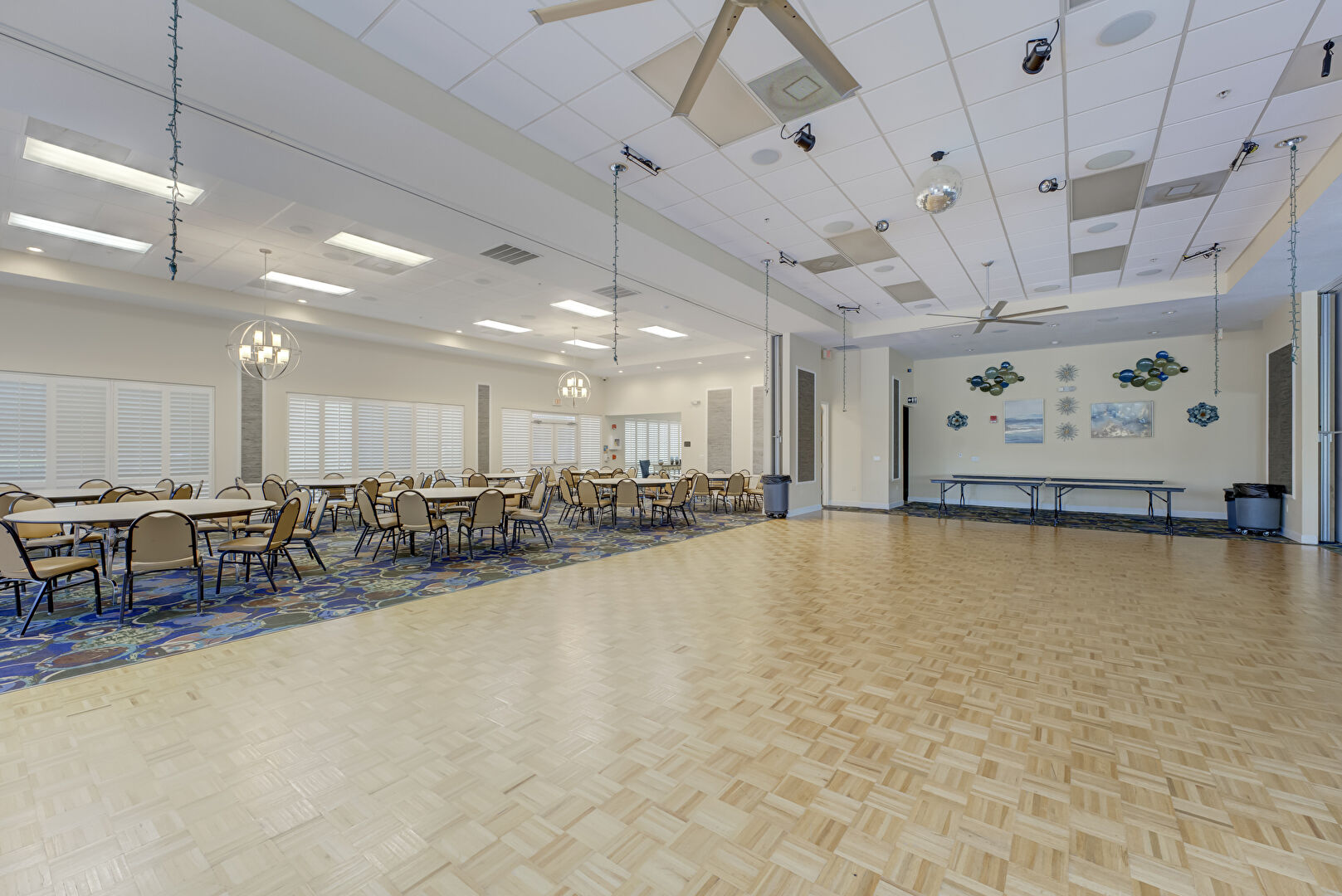 Baseboards Wall, Ceiling Fan, Drywall, French Doors, Natural Light, Notable Chandelier, Tile Floor, Vent, High Ceiling