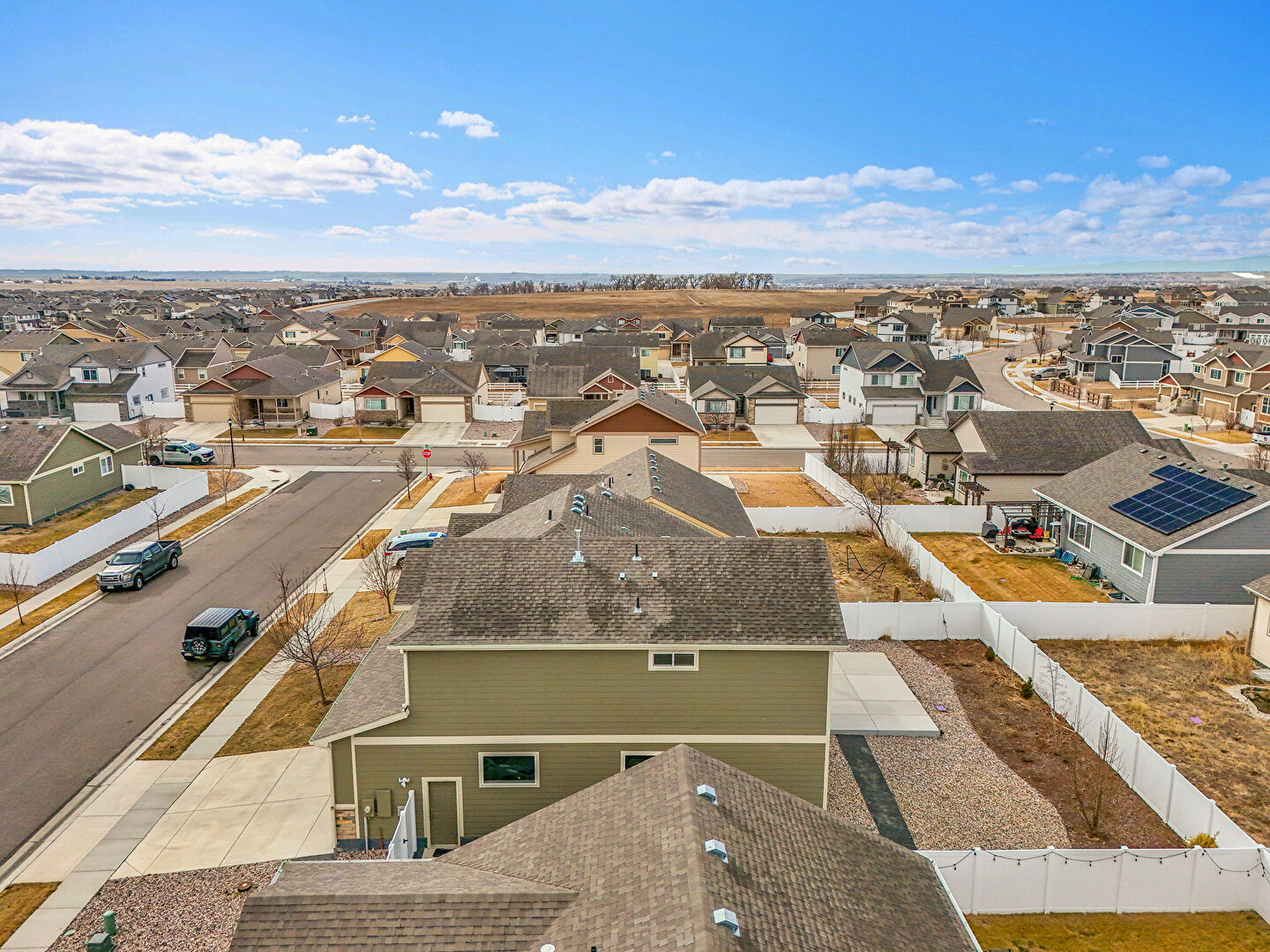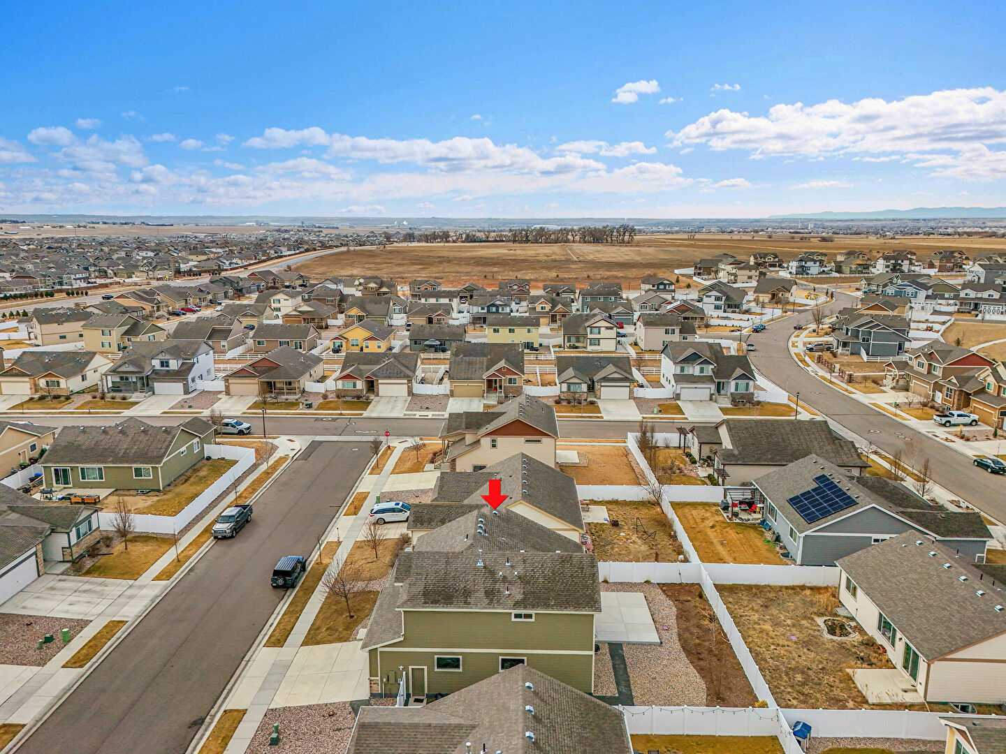 Board Batten Siding, Built In Garage, Downspout, Driveway, Fence, Garage, Gate, Gutters, Horizontal Siding, Lawn, Porch, Residential View, Shingle Roof, Solar Panels, Stairs, Stone Siding, Vertical Siding, Board Batten Siding, Downspout, Porch, Vertical Siding