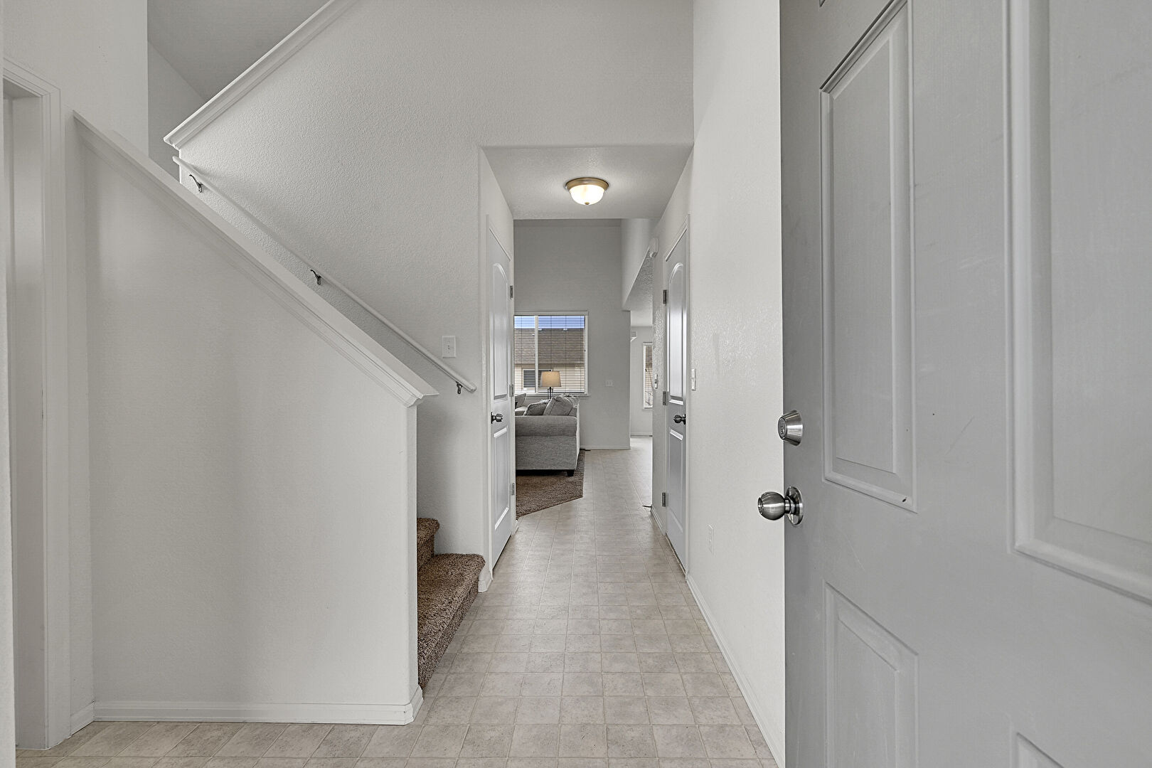 Drywall, Natural Light, Stairs, Vinyl Floor, Baseboards Wall