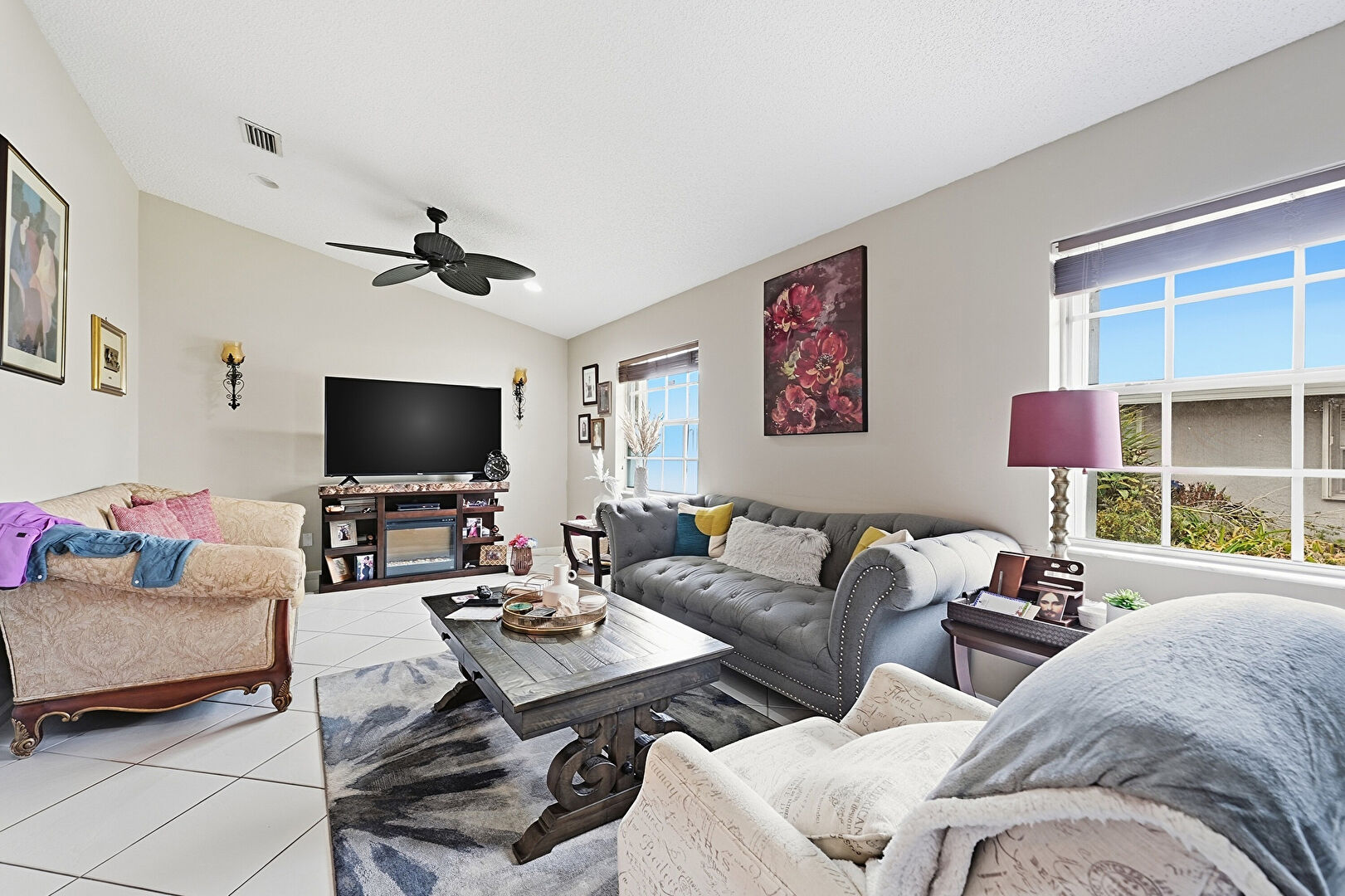Ceiling Fan, Drywall, Natural Light, Recessed Lighting, Tile Floor, Vaulted Ceiling, Vent, Drywall, Vaulted Ceiling