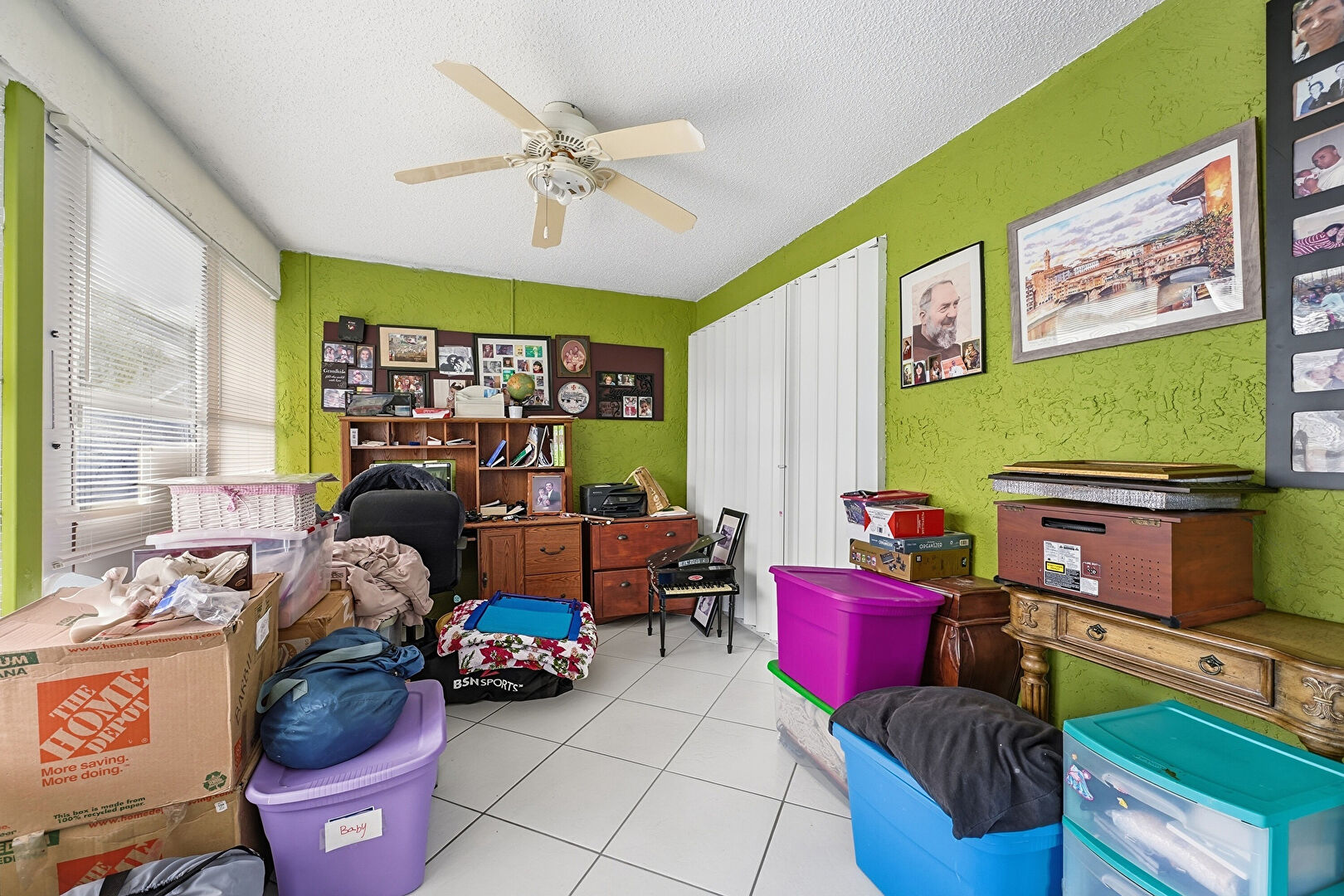 Ceiling Fan, Natural Light, Textured Ceiling, Textured Wall, Tile Floor, Ceiling Fan, Tile Floor