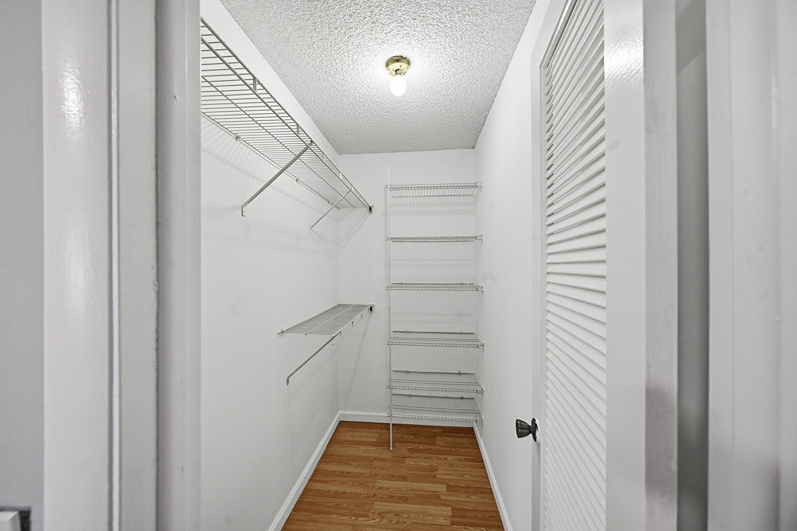 Baseboards Wall, Closet, Drywall, Natural Light, Textured Ceiling, Vent, Wood Finish Floor, Natural Light, Textured Ceiling