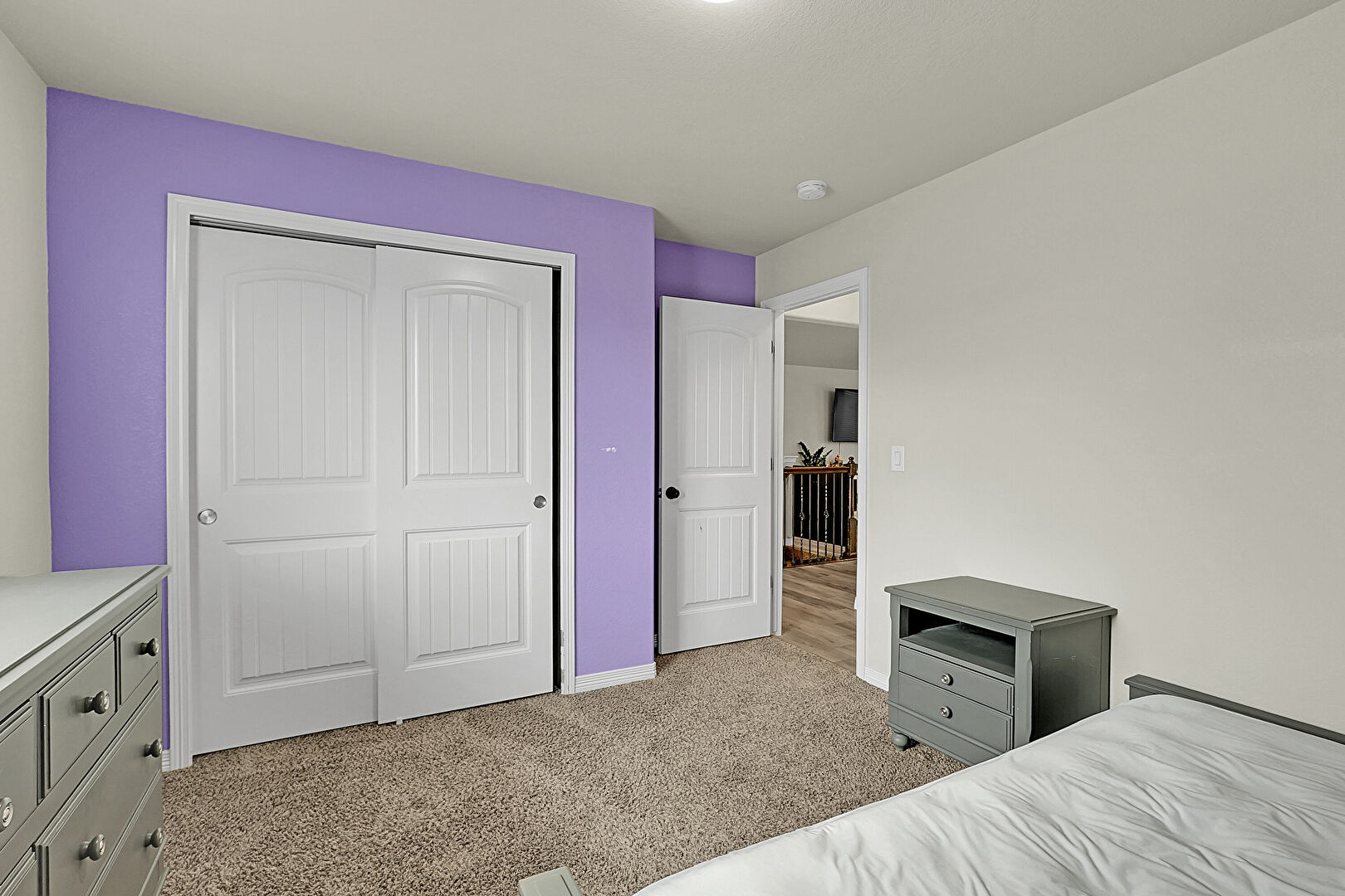 Baseboards Wall, Carpet, Closet, Drywall, Smoke Carbon Monoxide Detector, Wood Wall, Baseboards Wall, Natural Light
