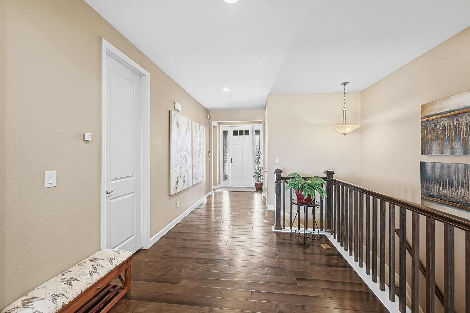 Baseboards Wall, Drywall, Natural Light, Recessed Lighting, Textured Wall, Wood Finish Floor, Baseboards Wall, Upstairs Landing