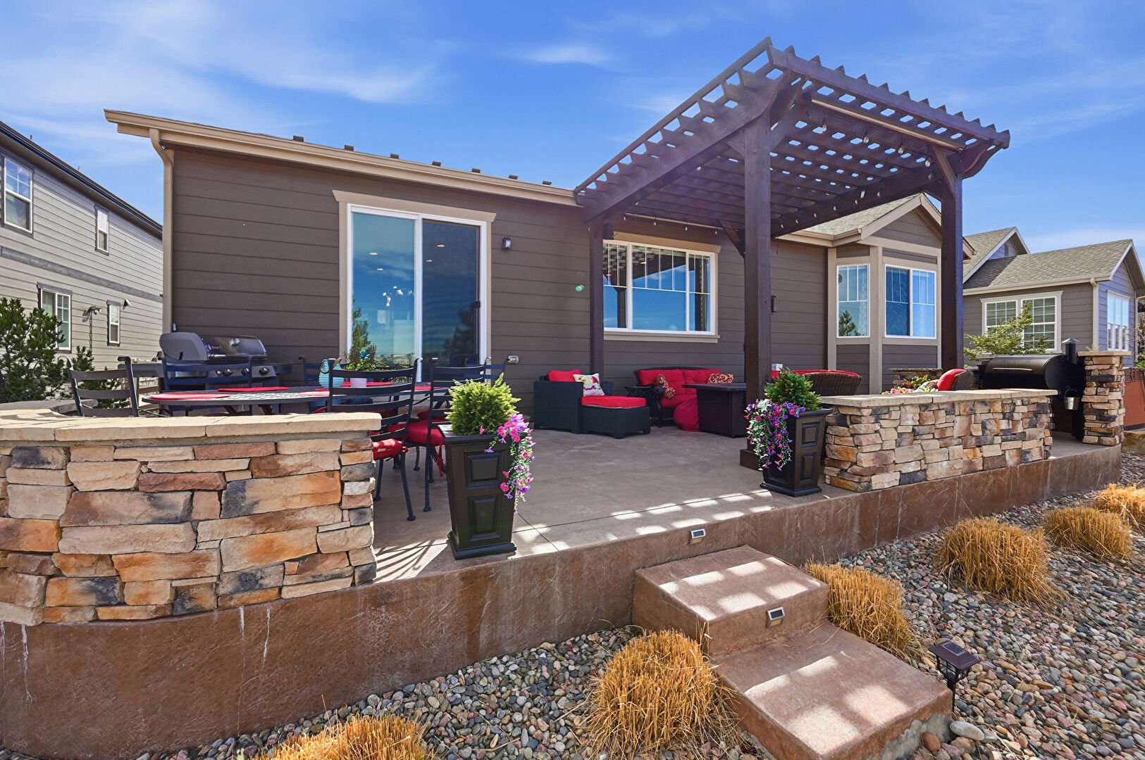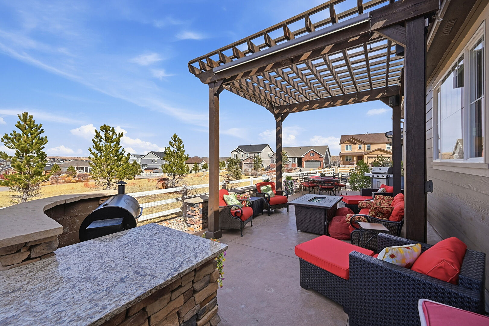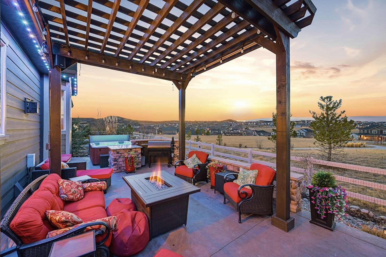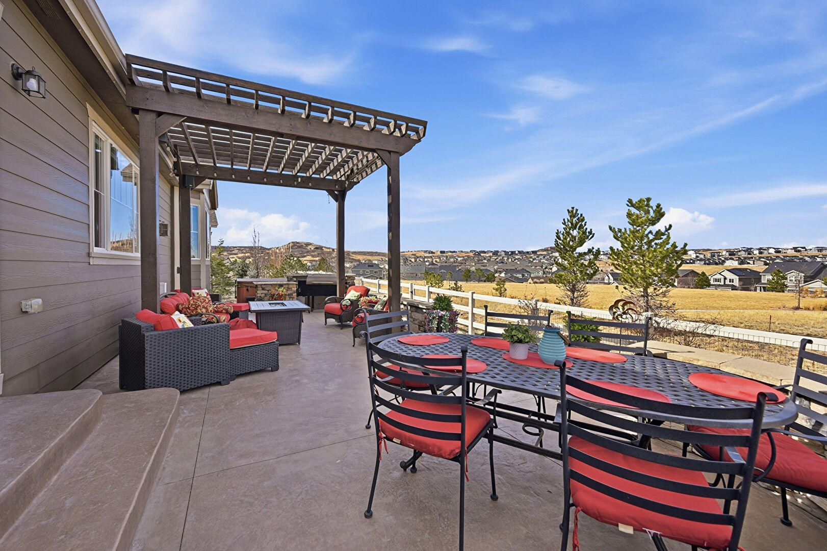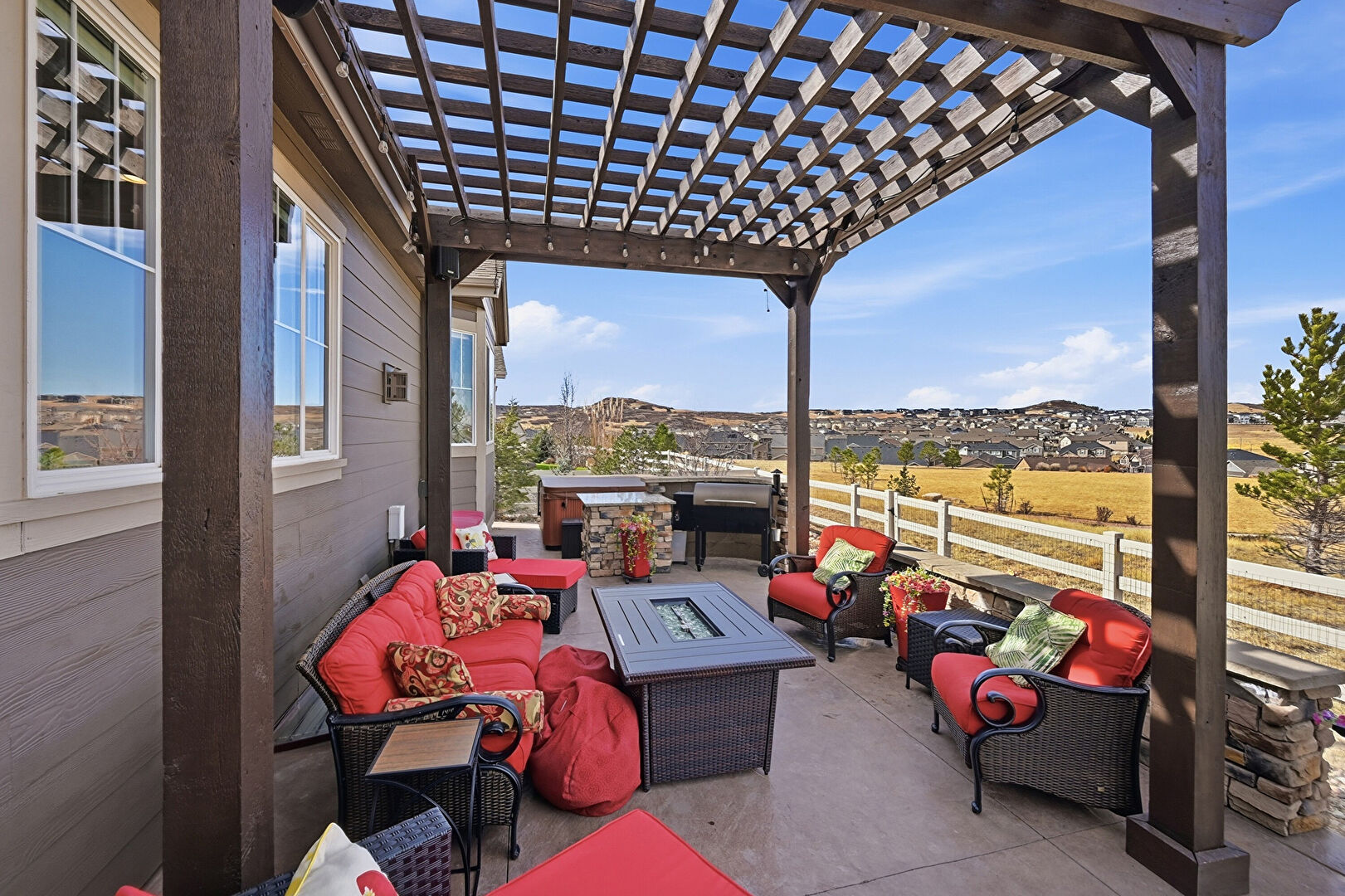Central Ac, Deck, Entry Steps, Fence, Fire Pit, Grill, Hot Tub, Outdoor Dining Area, Outdoor Living Space, Patio, Pergola, Residential View, Fire Pit, Mountain View, Outdoor Living Space, Patio, Residential View