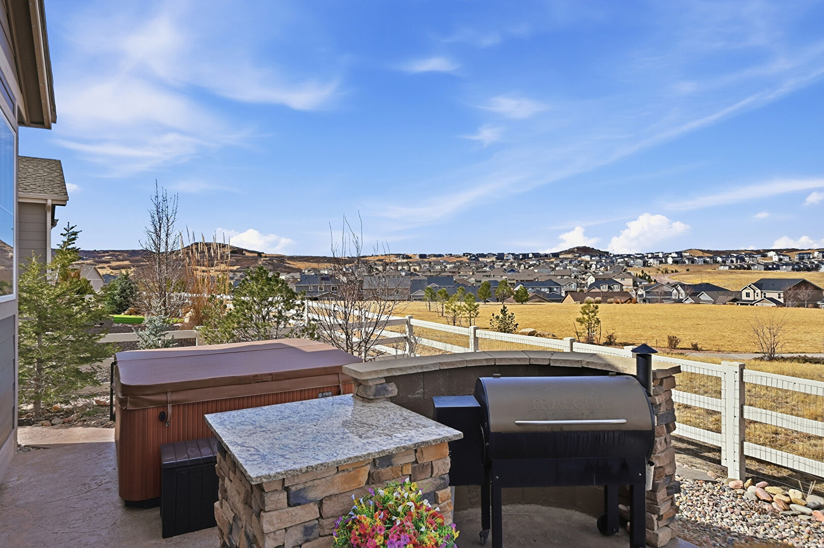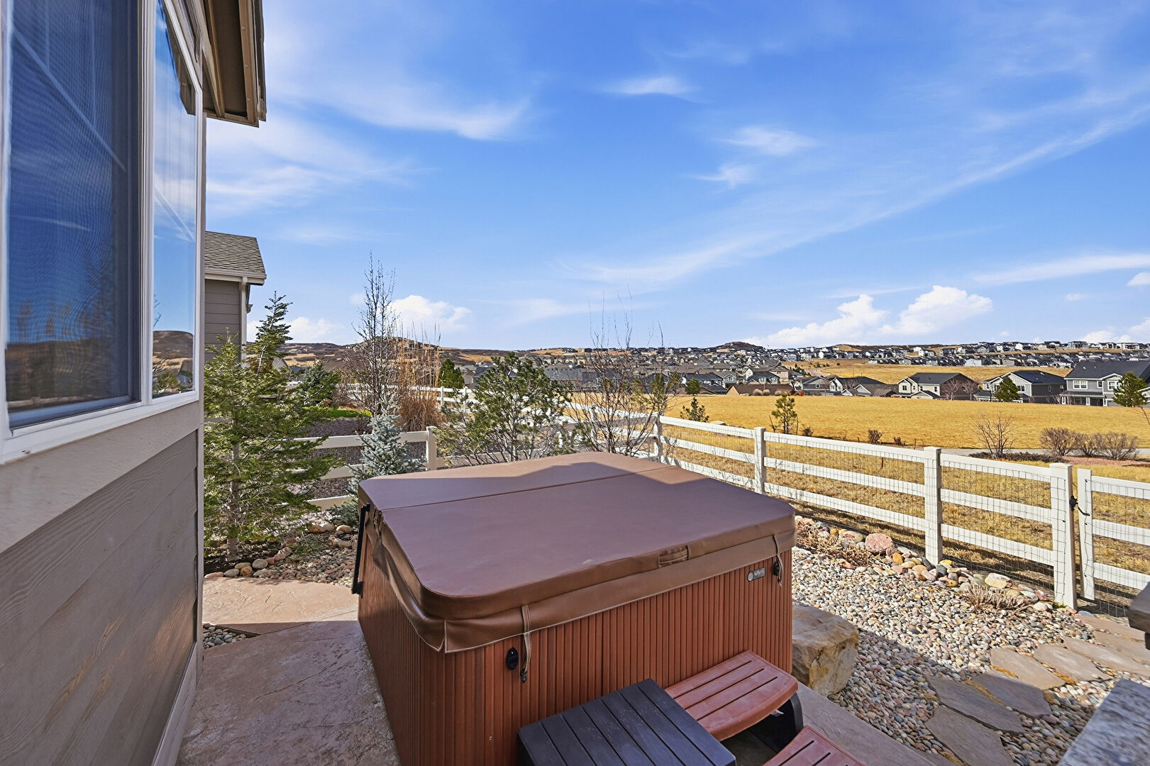 Hot Tub, Patio, Residential View, Fence, Lawn